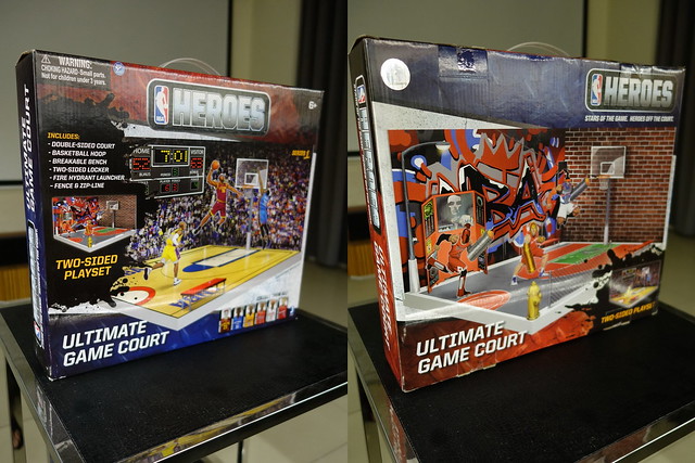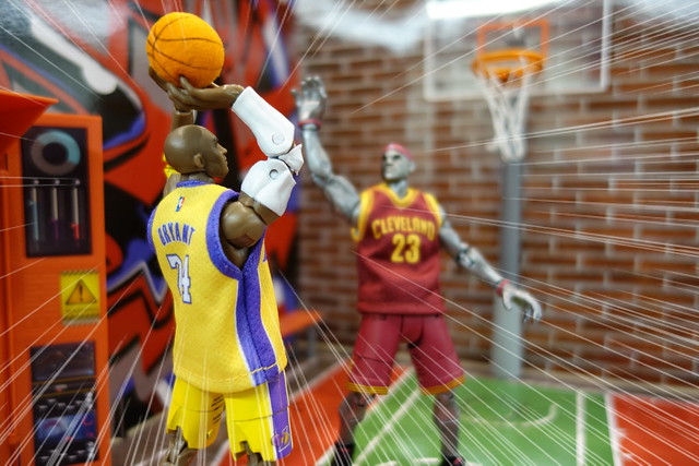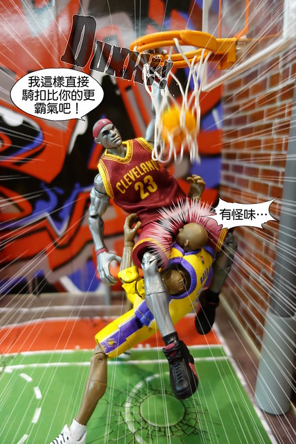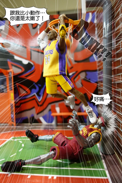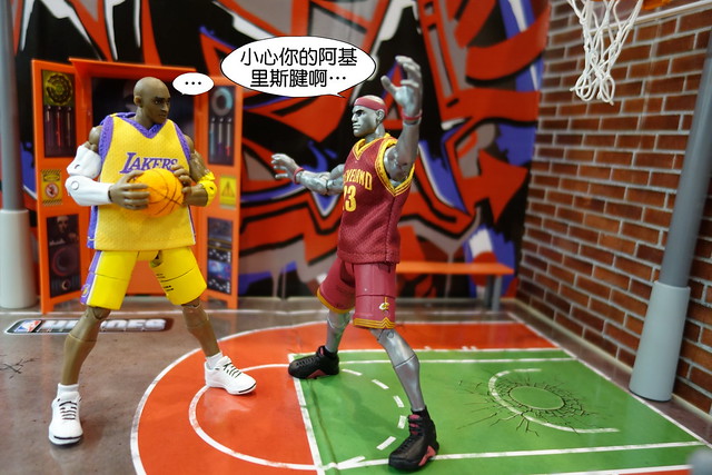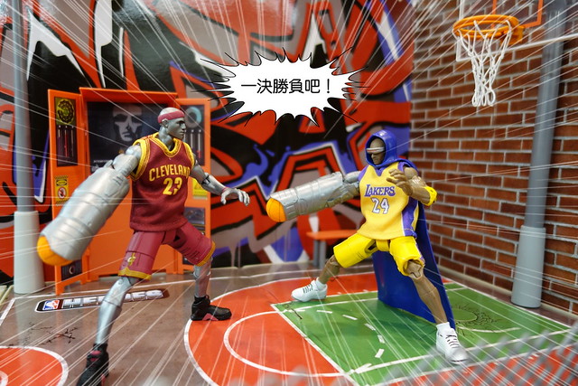 裡頭的球員被賦予像是特異功能組一般的超能力,還算是挺有趣的設定,不過在我眼中,目前NBA最具代表性的人物當屬Kobe Bryant和Lebron James,所以就先入手這兩位球星,以及此系列專用的球場組。