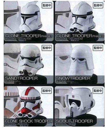 日本玩具大廠BANDAI 萬代玩具公司繼日前推出第一彈的星際大戰「複製頭盔收藏」(Star Wars Helmet Replica Collection)作品之後,第二彈的作品也即將開啟販售,包括了:帝國複製人士兵第一期版(Clone Trooper Phase 1)、帝國複製人士兵第二期版(Clone Trooper Phase 2)、帝國沙漠風暴兵(Sandtrooper)、帝國雪地風暴兵(Snowtrooper)、帝國震擊風暴兵(Clone Shock Trooper)、帝國斥侯兵(Scout Trooper)等六款作品外加一個隱藏版本的複製頭像角色。