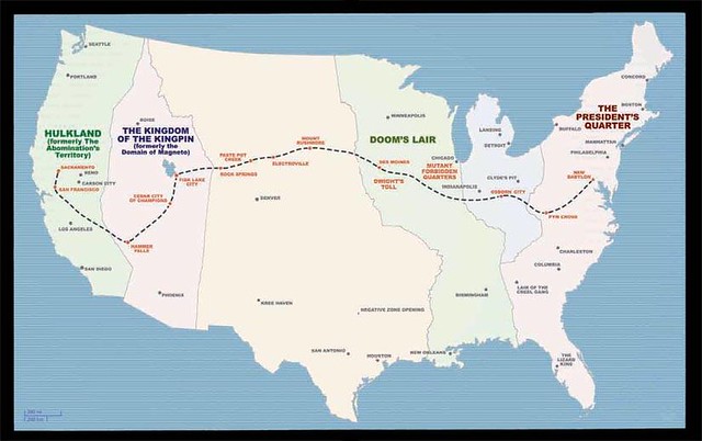 在超級英雄隕落之後,美國就由超級罪犯們瓜分了(按照紅骷髏的說法,暗示世界其他國家其實也被超級罪犯佔領了,只是沒有詳細說明是誰統治)。美國原名的 America 已經改成 Amerika,以下是該國的基本資料: