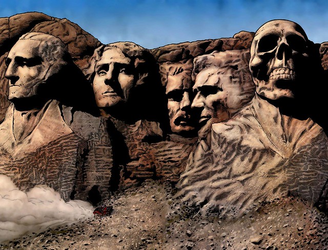 Mount Rushmore(羅斯摩爾山),為了紀念美國歷年來最偉大的總統們,而將其中四屆總統的肖像給雕塑在上面。但是在這個現實裡,擔任總統的紅骷髏其臉型也出現在山壁上。