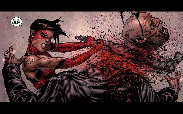 女蜘蛛人,本名是 Ashley Barton(艾西莉雅‧巴頓),是克林特和托妮雅的女兒。對她而言,烏特隆八號比較像是父親。她跟兩個朋友穿著超級英雄裝,企圖推翻金賓的霸權,結果沒想到反被抓,自己另外兩個朋友則被野蠻島的恐龍吃掉。之後,鷹眼趕來救自己女兒,釋放出來的艾西莉雅則將金賓殺害。