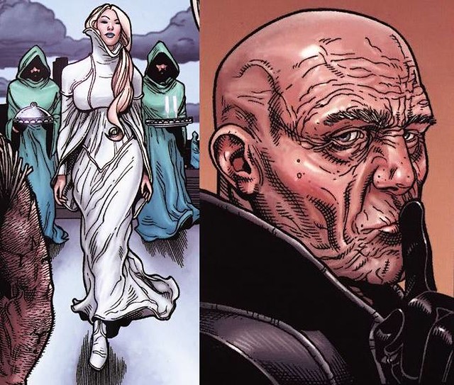 在那裡,他們遇到X學院的校長-白皇后艾瑪,她之所以外表還那麼年輕,是因為用強大的心靈能力,讓眾人看見她想讓大家看到的樣子(也提到市區其實破爛不堪,之所以繁華也是同樣的道理)。