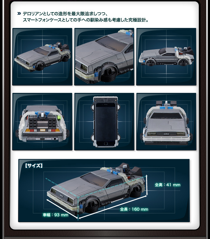 在1985年推出第一集之後,《回到未來》成為了影史上科幻時空電影的經典三部曲;其中貫穿全劇情的「時光車」更是多年來許多影迷爭相收藏的經典載具,尤其是在《回到未來 2》劇情中虛構的2015年登場的飛行版時光機,更是最熱門的款式。在劇中30 年後的今天,BANDAI 「CRAZY CASE」系列將在《回到未來 2》劇情中,穿梭於虛構的2015年時光車造型,製作成iPhone 6專屬手機殼。