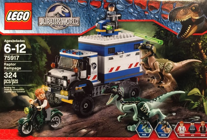 而LEGO® 公司更一口氣的連續公佈了從編號75915 到編號75919 的五款組合作品:「上帝之龍逃脫組」(Indominus Rex Breakout)、「暴龍追蹤組」(T-Rex Tracker)、「雙脊龍突擊組」(Dilophosaurus Ambush)、「迅猛龍暴走組」(Raptor Rampage)、以及「無齒翼龍追捕組」(Pteranodon Capture)。