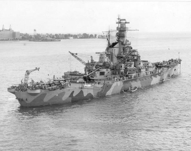 ↑ BB-58 Indiana 歷史照片-2 從側面望去,虎斑迷彩是她最迷人的特徵!