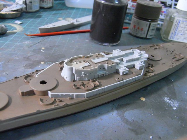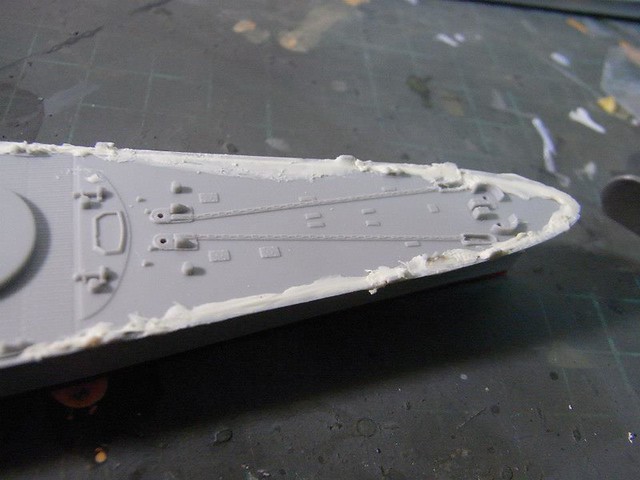↑ 利用補土來補平甲板接縫
