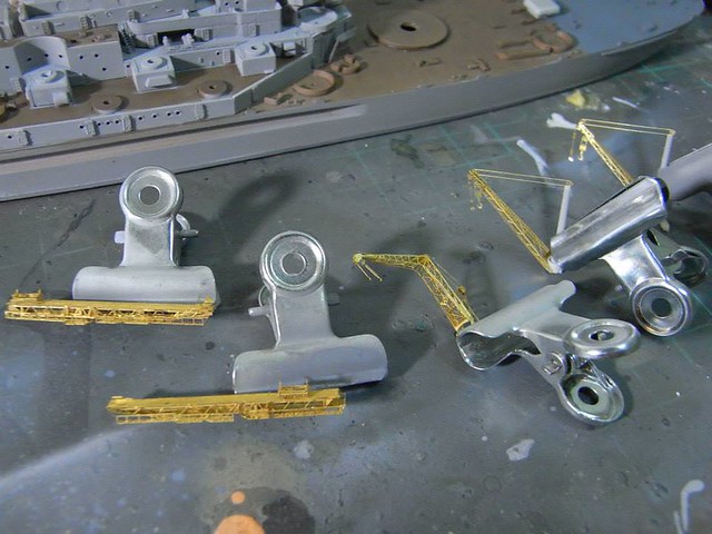 ↑ 操作蝕刻片真是驚心動魄,美軍吊車與彈射器的工序真複雜。