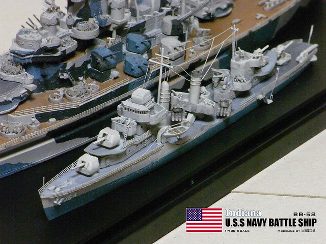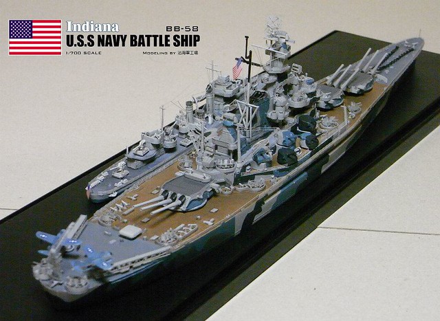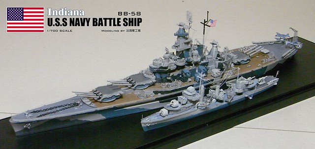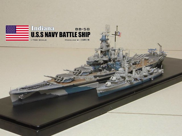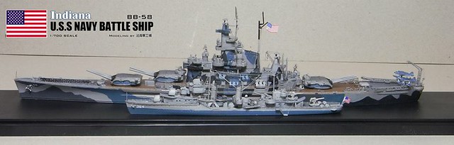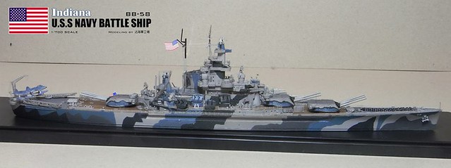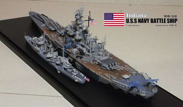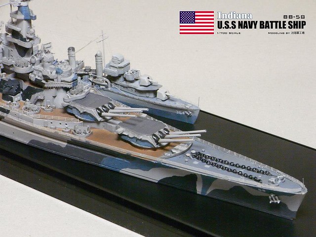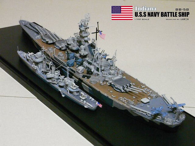 各位好,我是詹波,興趣是軍艦模型,今天分享的是美國海軍戰艦BB-58USS –Indiana號戰艦與DD-364馬漢號,本艦為南達科它級二號艦,於1942年服役,本艦最大的特徵在於艦身的迷彩,現在就讓我們一起來看看模型製作的過程吧: