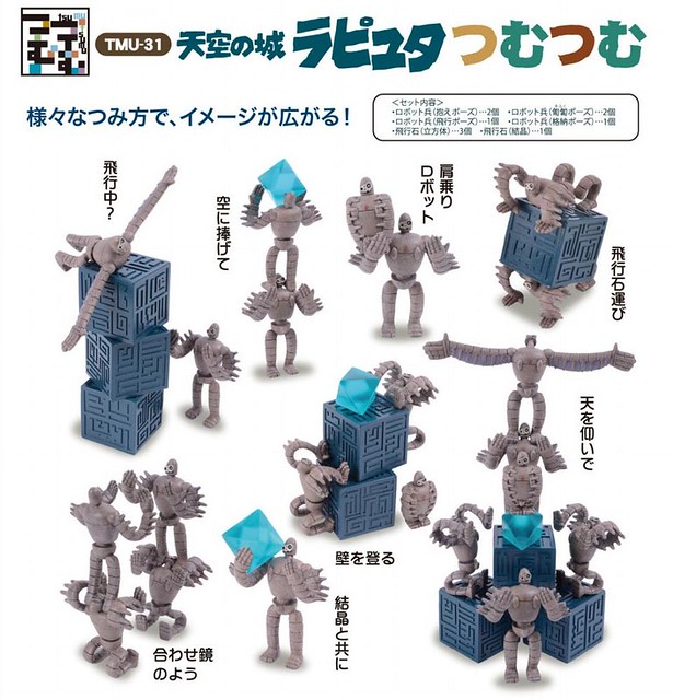 專門推出有趣疊疊樂玩具商品的Ensky(エンスカイ)玩具公司將推出天空の城ラピュタ つむつむ TMU‐31 天空之城 機器人兵 疊疊樂(暫時翻譯),繼推出宮崎駿大師的吉卜力工作室所推出的動畫電影系列龍貓疊疊樂、魔女宅急便 疊疊樂 等等,這次將天空之城當中出現的神祕機械人兵縮小尺寸成為疊疊樂。
