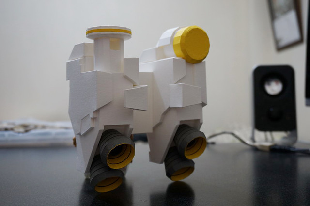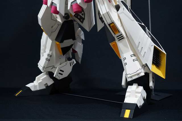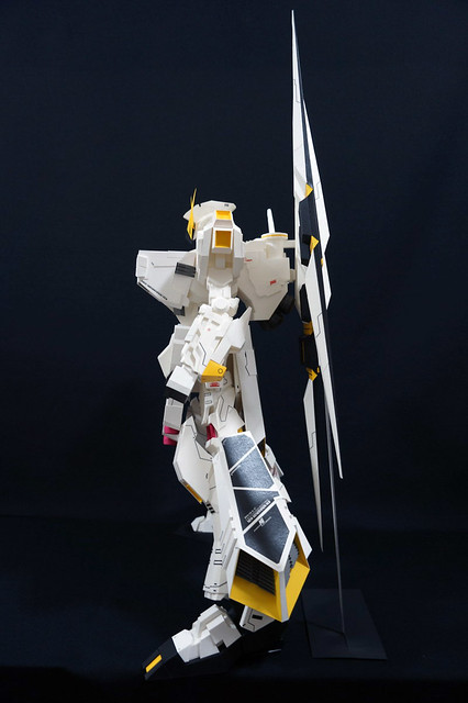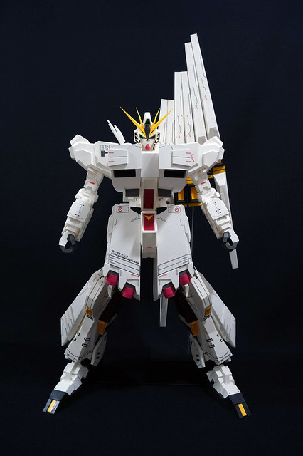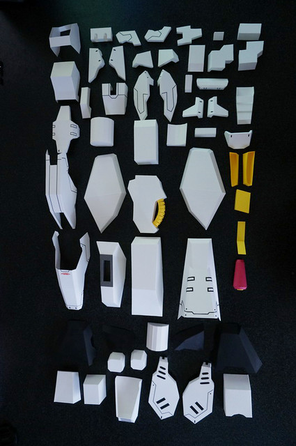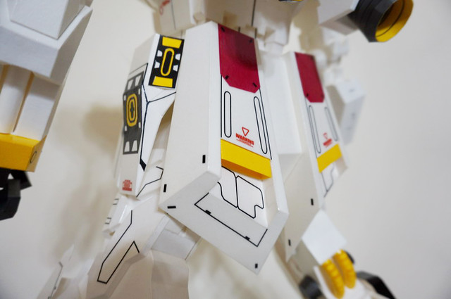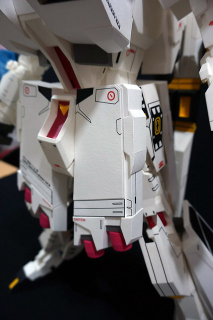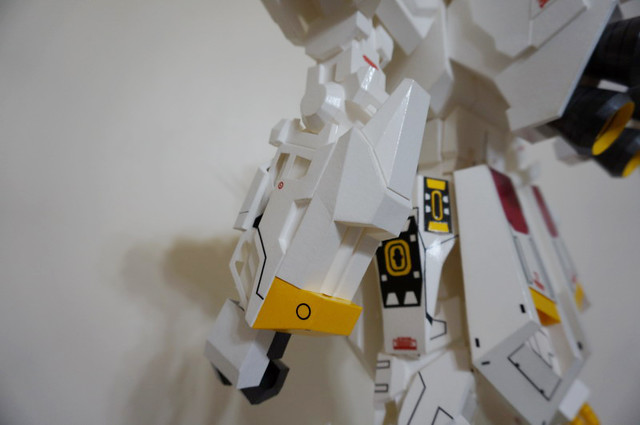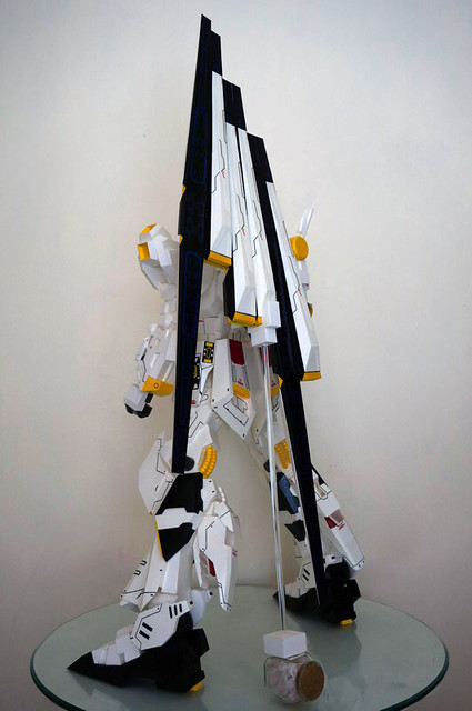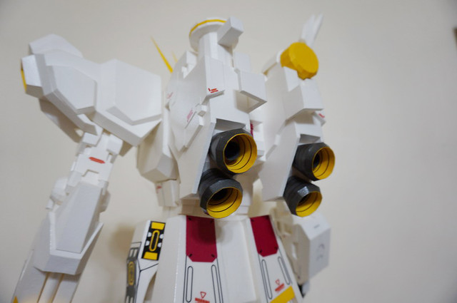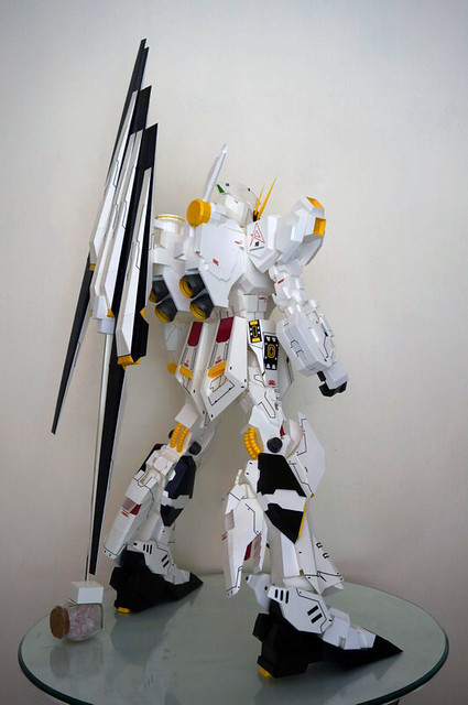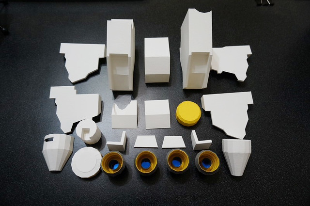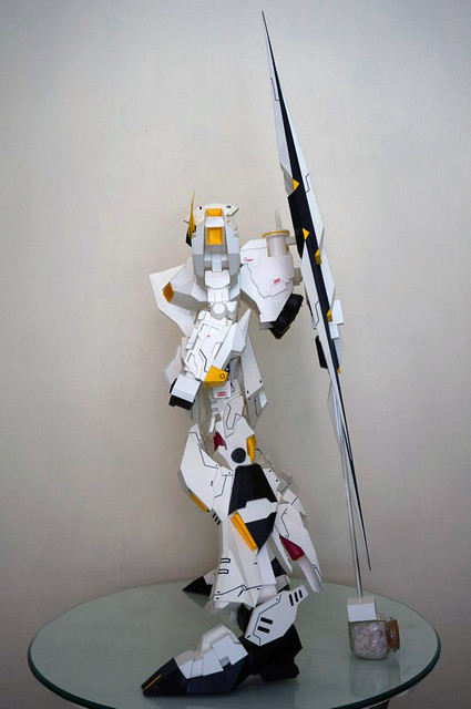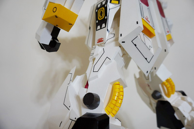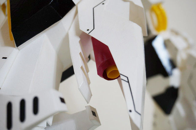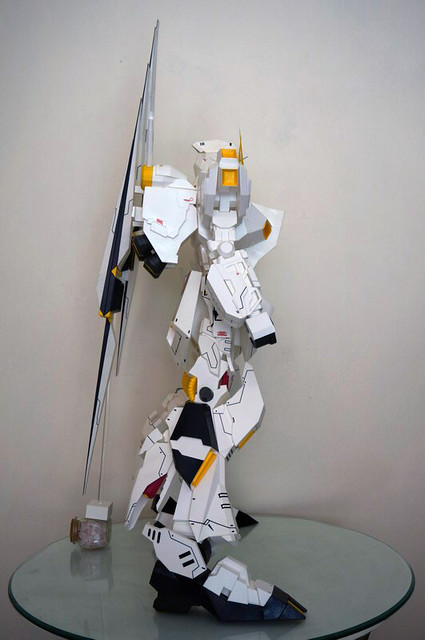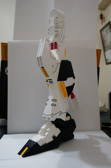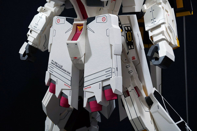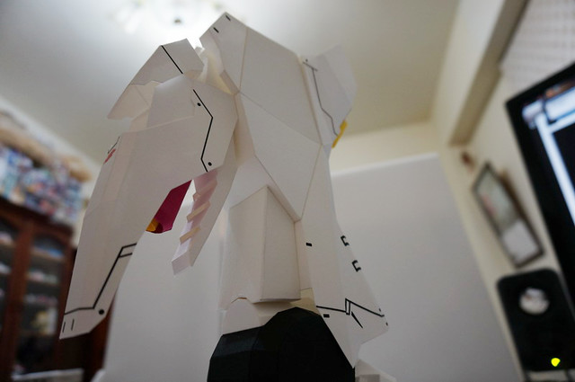 整台使用約200磅的卡紙(正確磅數和紙的名稱不知)+部分使用120磅的丹迪紙黑色部分(包括黑色線條色塊),使用噴漆+噴墨列印+色卡。原檔案放大200%製作,成品不包含浮游炮,高度約75CM,部分地方也使用珍珠板當內充物強化。