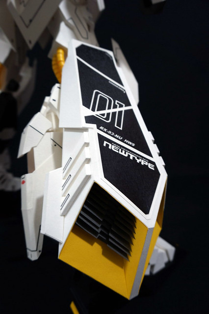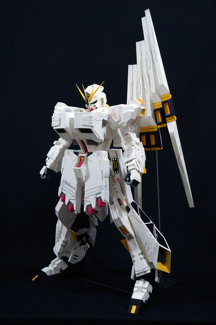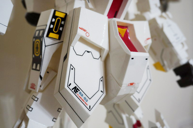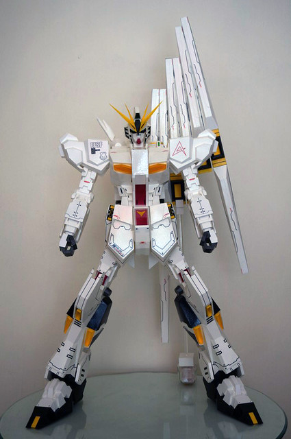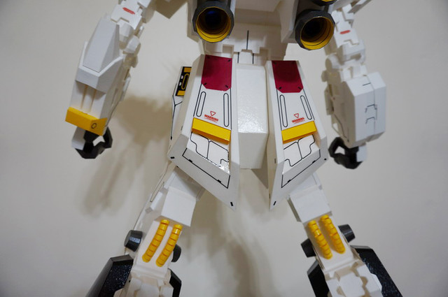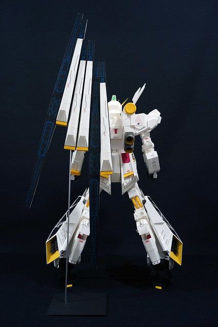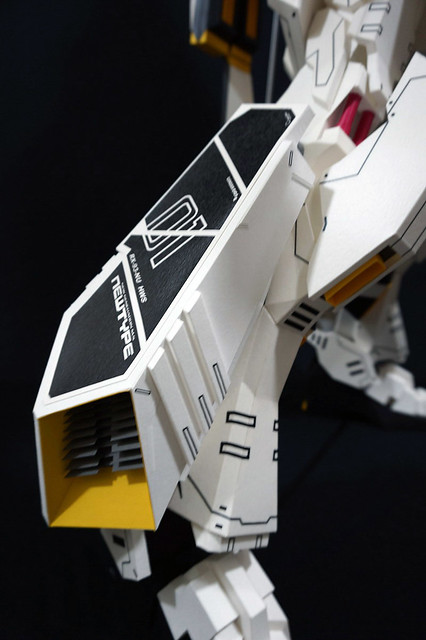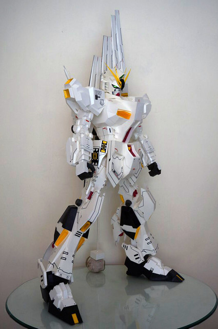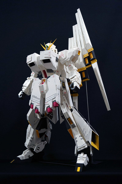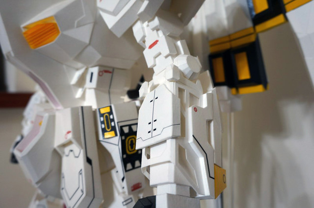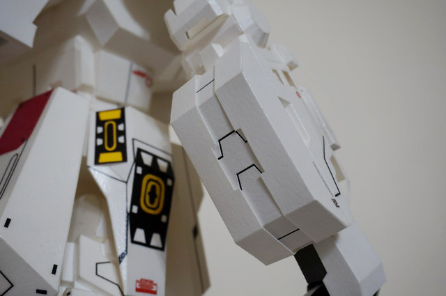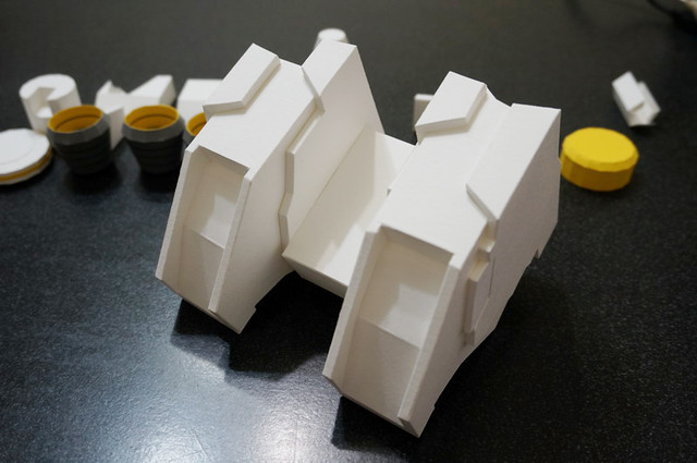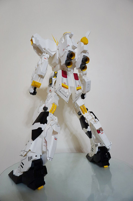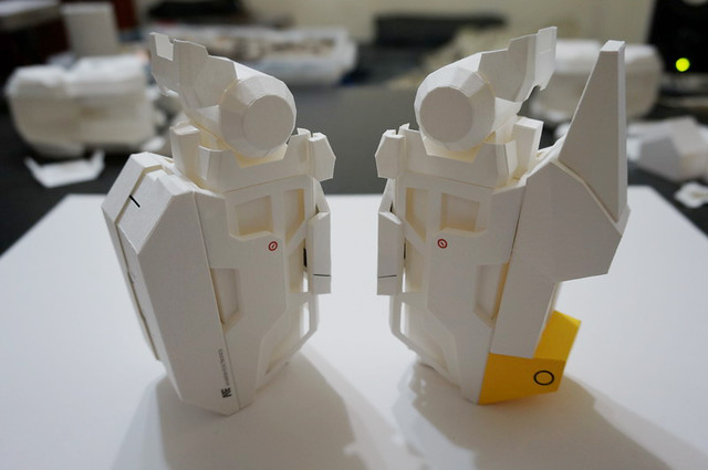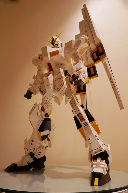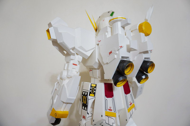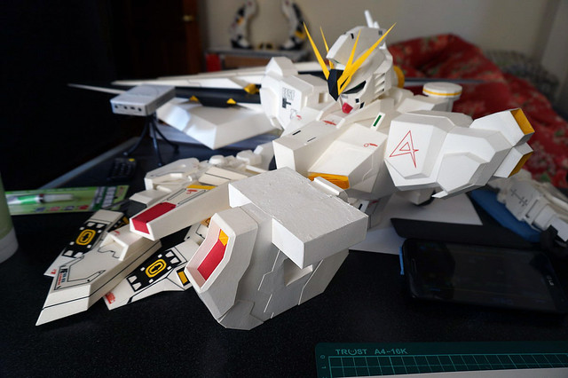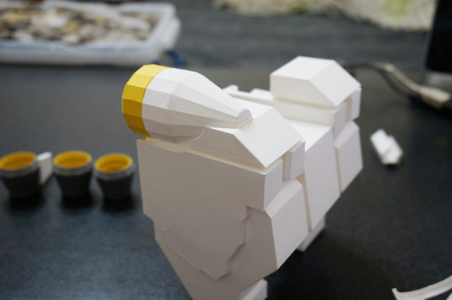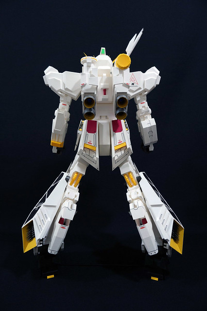 整台使用約200磅的卡紙(正確磅數和紙的名稱不知)+部分使用120磅的丹迪紙黑色部分(包括黑色線條色塊),使用噴漆+噴墨列印+色卡。原檔案放大200%製作,成品不包含浮游炮,高度約75CM,部分地方也使用珍珠板當內充物強化。