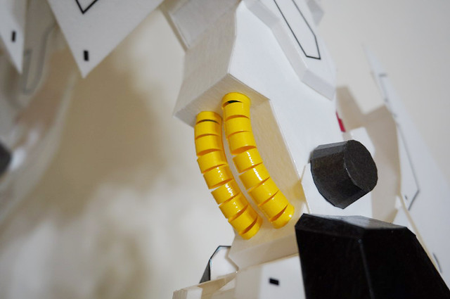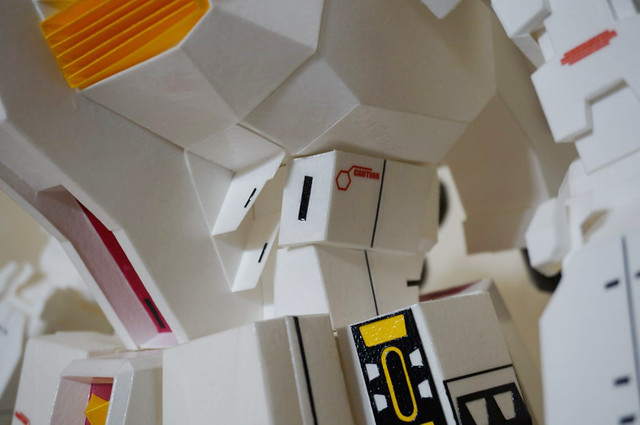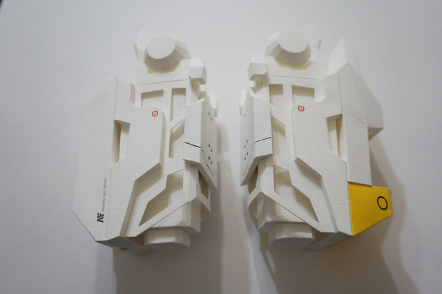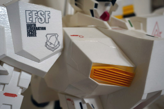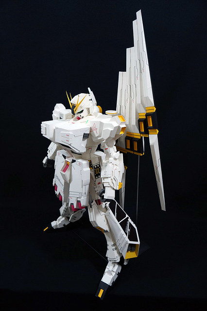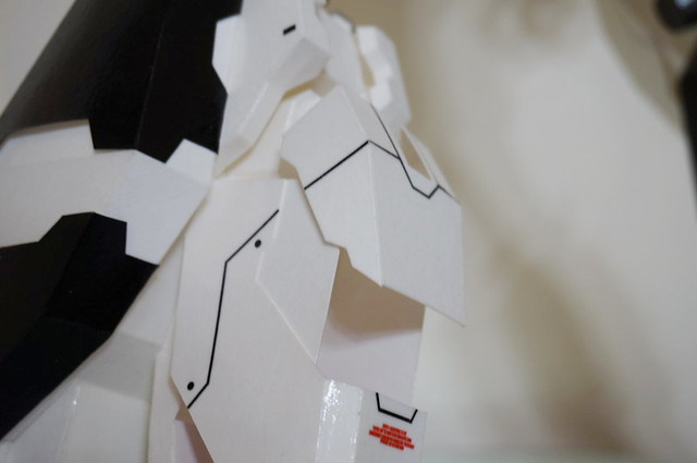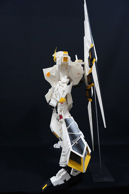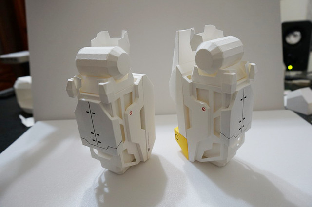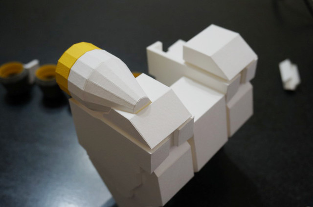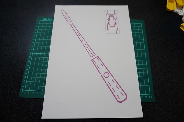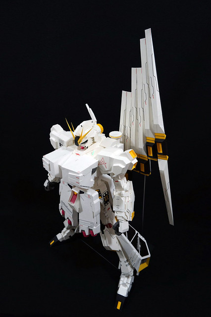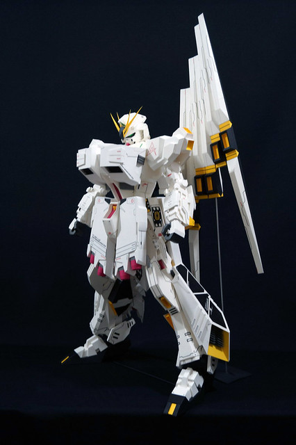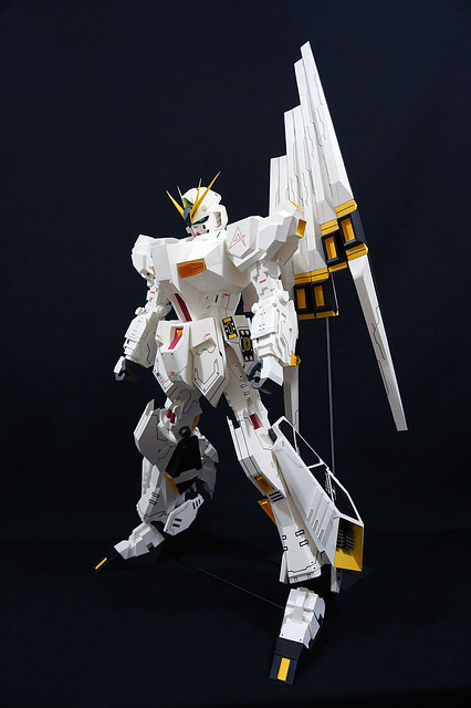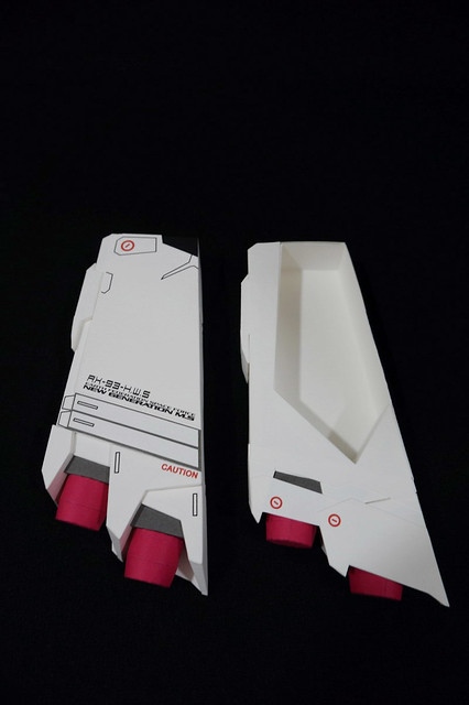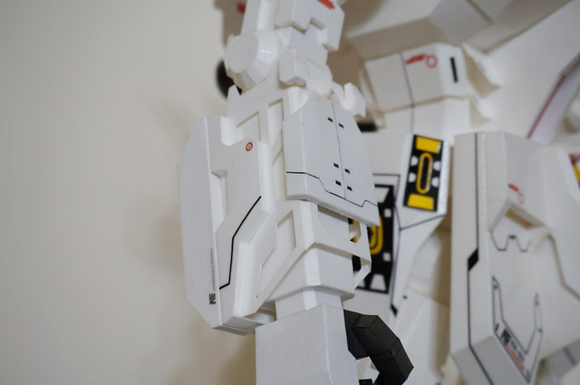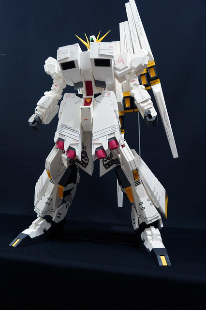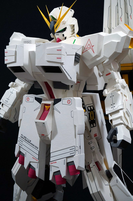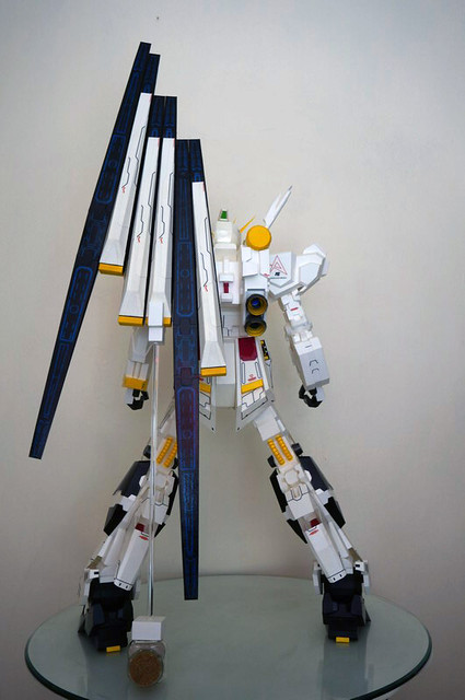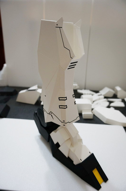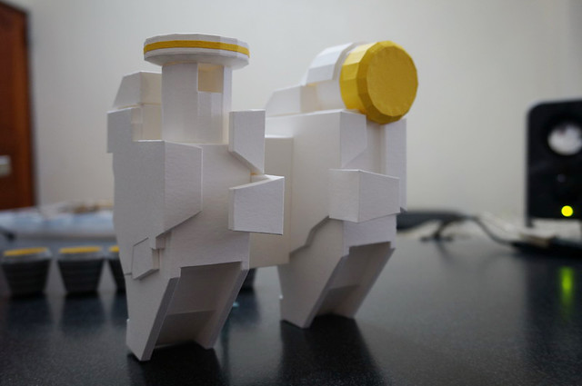 整台使用約200磅的卡紙(正確磅數和紙的名稱不知)+部分使用120磅的丹迪紙黑色部分(包括黑色線條色塊),使用噴漆+噴墨列印+色卡。原檔案放大200%製作,成品不包含浮游炮,高度約75CM,部分地方也使用珍珠板當內充物強化。