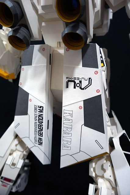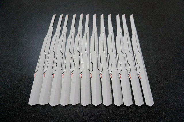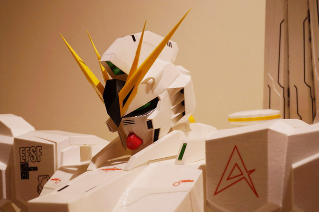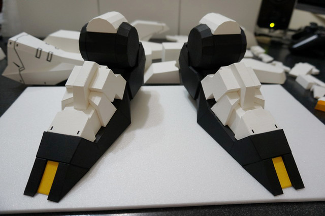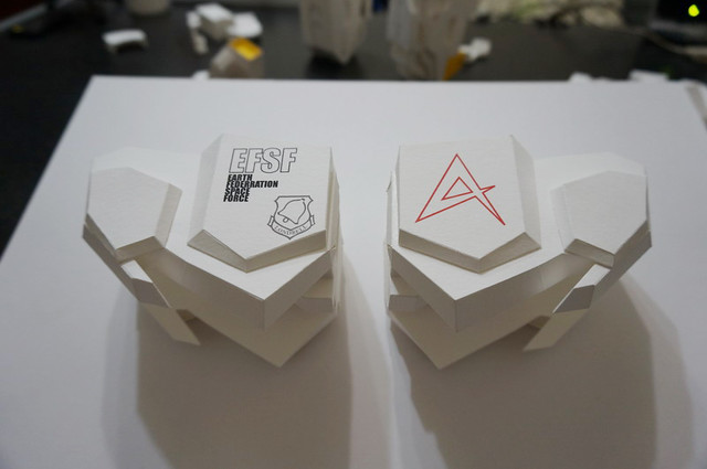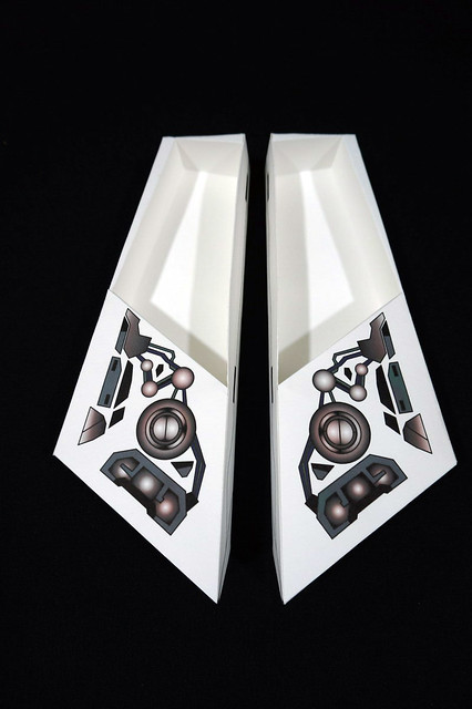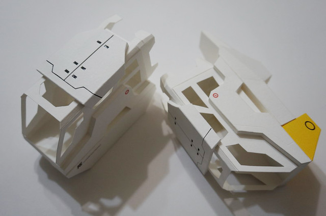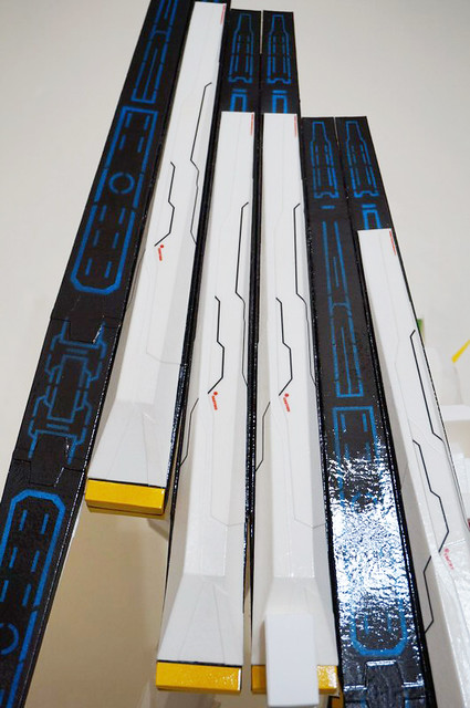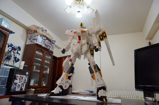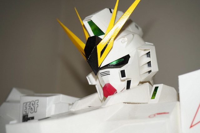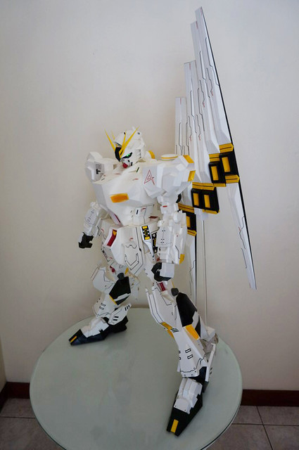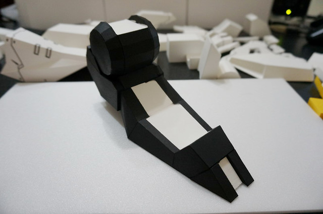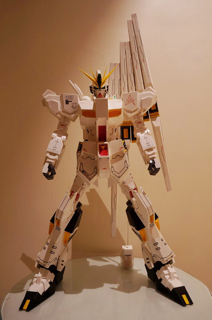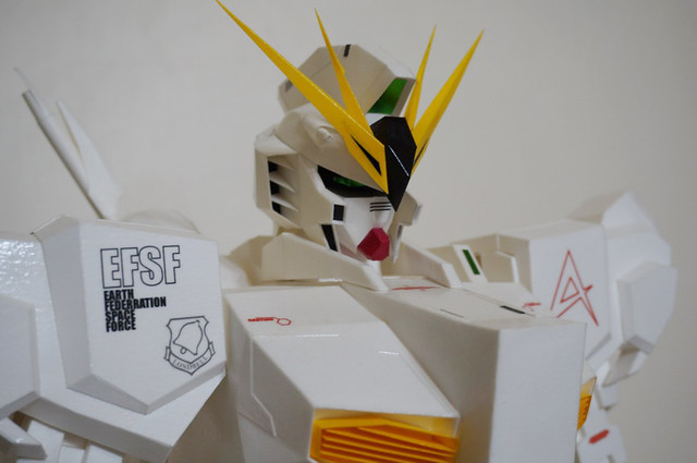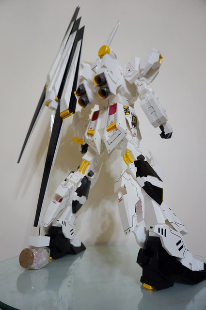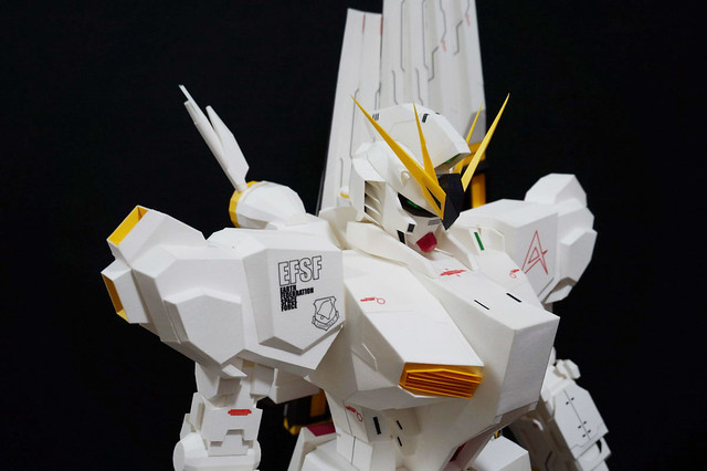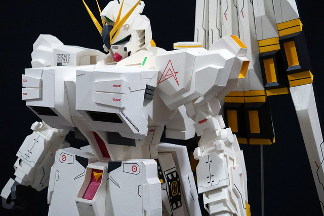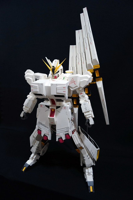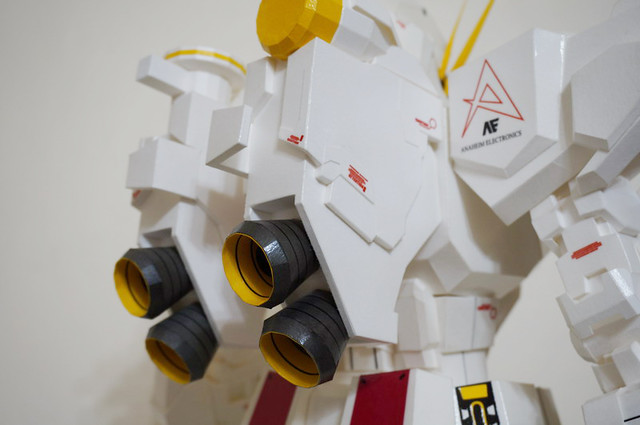 整台使用約200磅的卡紙(正確磅數和紙的名稱不知)+部分使用120磅的丹迪紙黑色部分(包括黑色線條色塊),使用噴漆+噴墨列印+色卡。原檔案放大200%製作,成品不包含浮游炮,高度約75CM,部分地方也使用珍珠板當內充物強化。