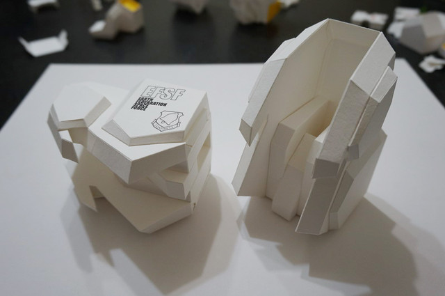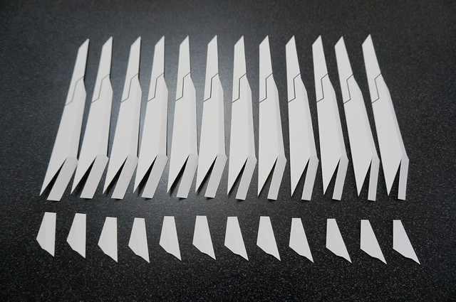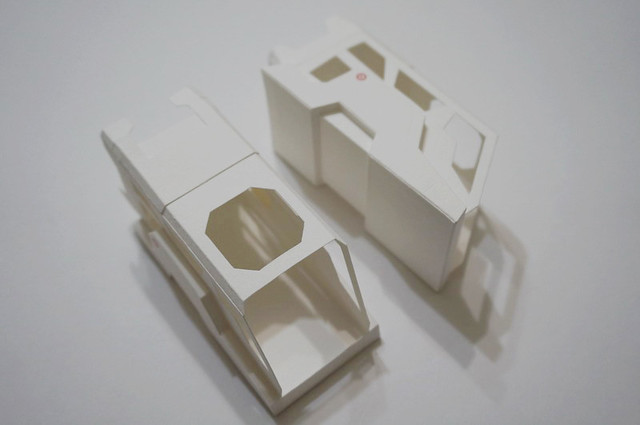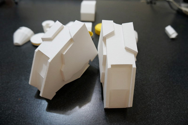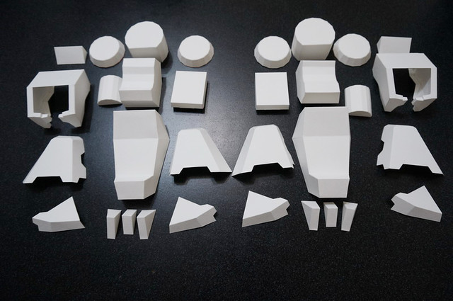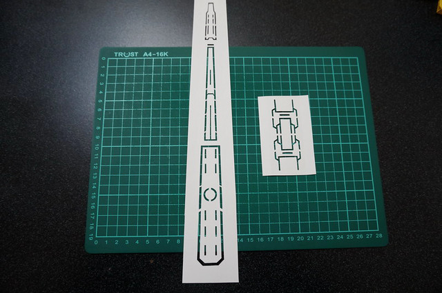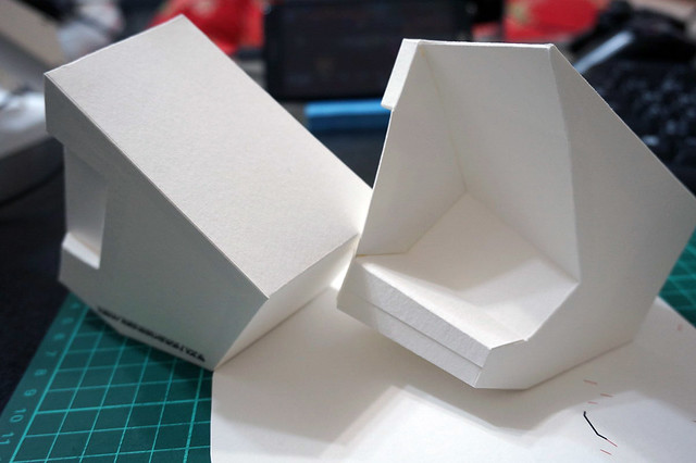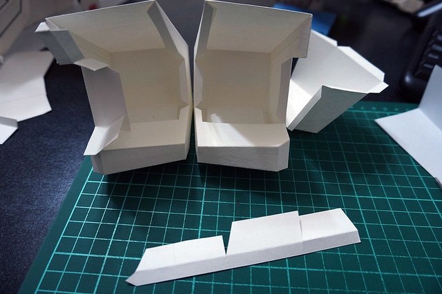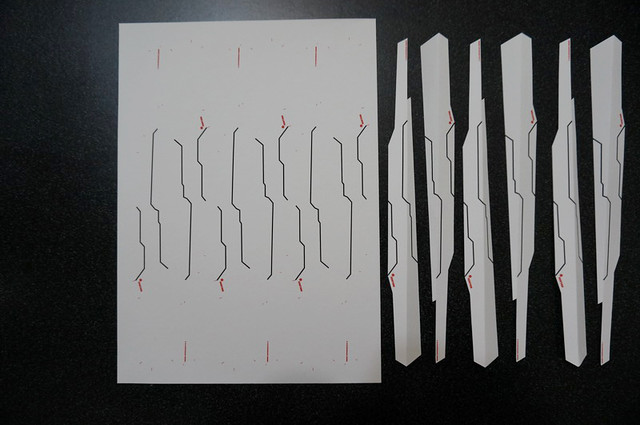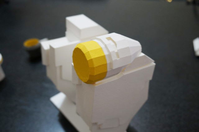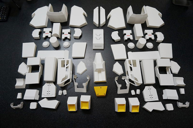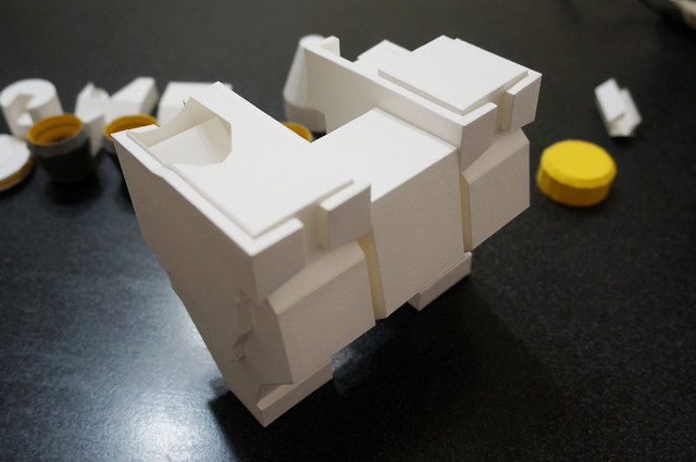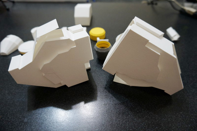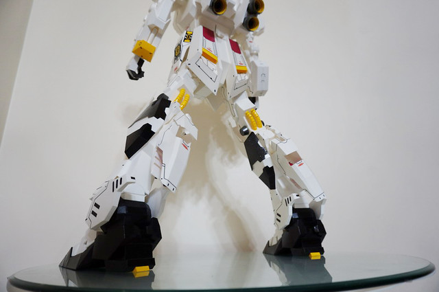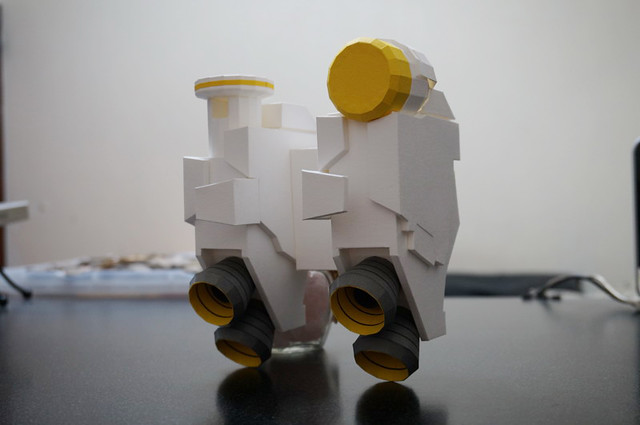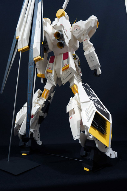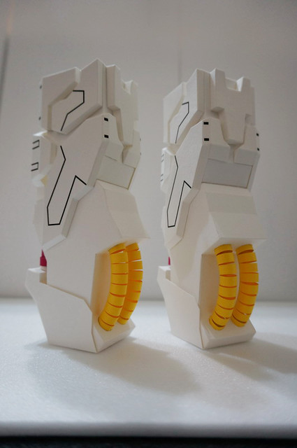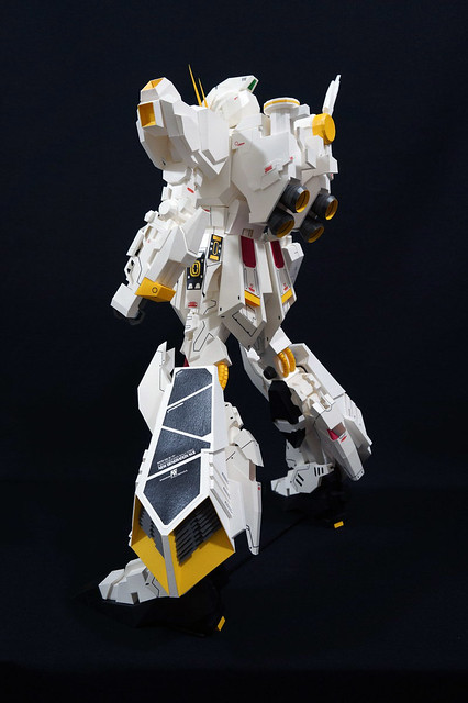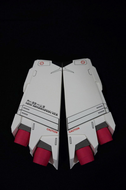整台使用約200磅的卡紙(正確磅數和紙的名稱不知)+部分使用120磅的丹迪紙黑色部分(包括黑色線條色塊),使用噴漆+噴墨列印+色卡。原檔案放大200%製作,成品不包含浮游炮,高度約75CM,部分地方也使用珍珠板當內充物強化。