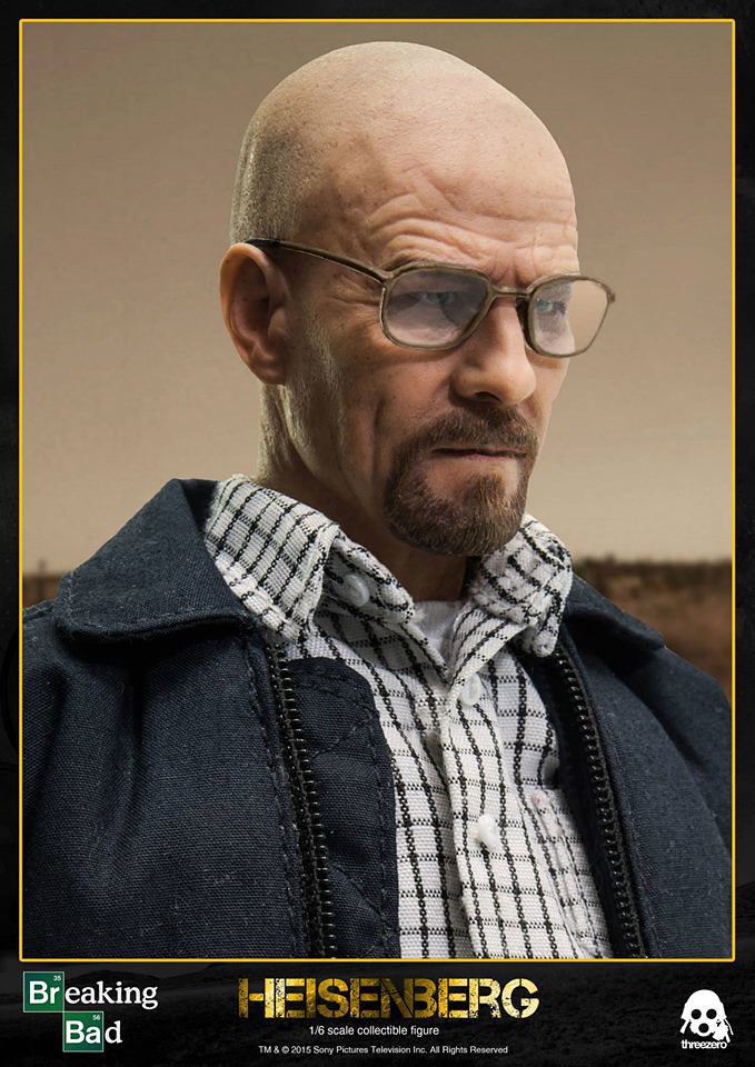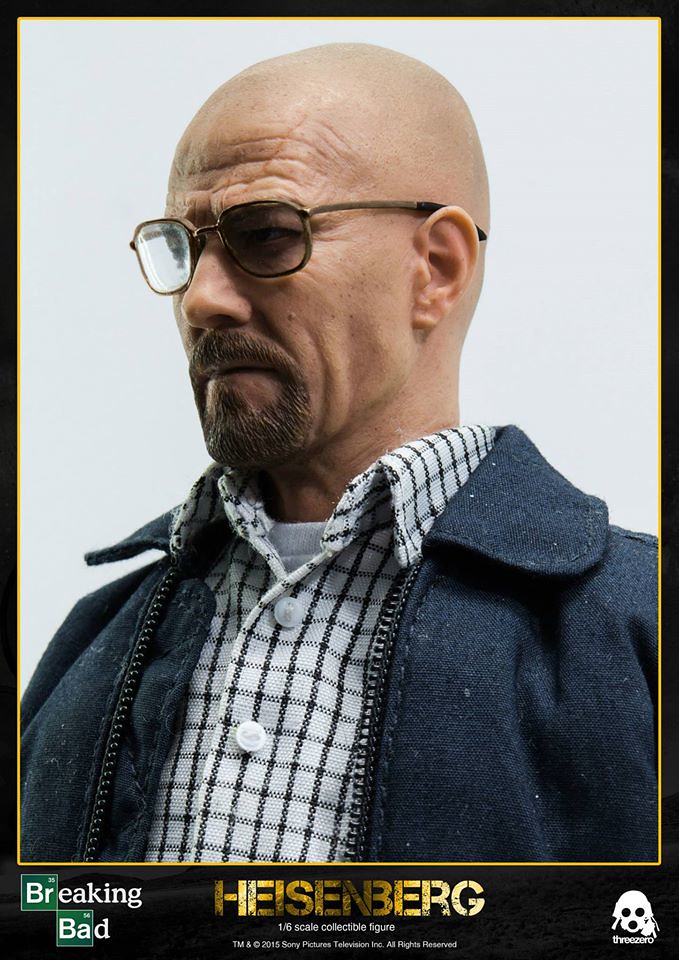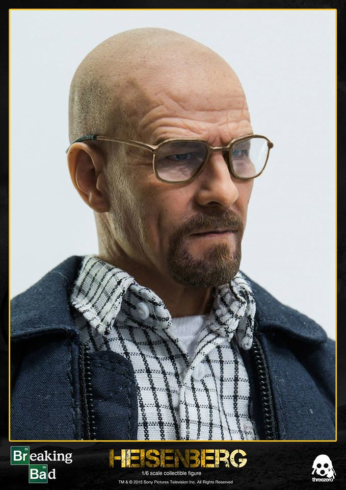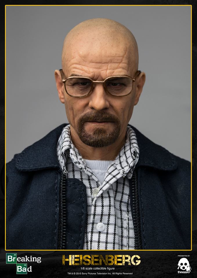 threezero 公司這次所推出1/6 比例的「海森堡」(Heisenberg)人偶作品完全重現了這個角色在電視影集中的造型,甚至做的跟宣傳海報上的造型一模一樣啊!而在頭雕的製作上又大大提升了一個等級,特別是在主角神情的描繪,以及剃光頭後頭頂毛細孔的質感都製作的相當細膩啊!
