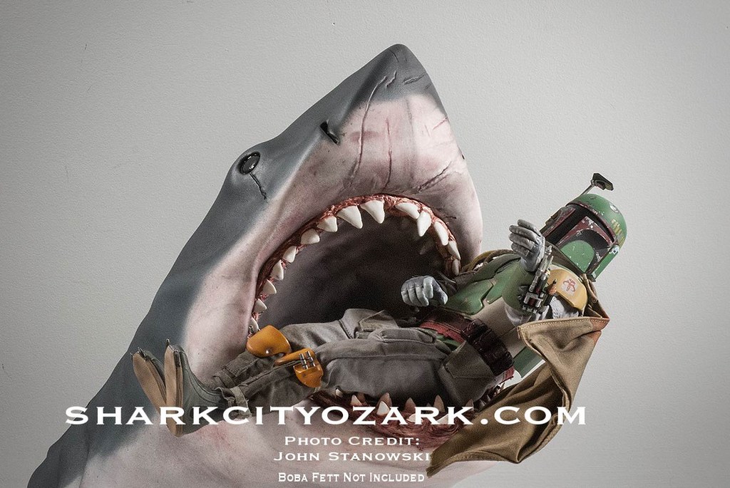相信許多玩具人應該都看過在1975 年時上映,由知名導演史蒂文·史匹柏執導的美國驚悚電影「大白鯊」(Jaws)吧?!其中那條吃了無數旅客的巨大的食人大白鯊更是搶眼啊!小編小時候看的時候還會做惡夢呢!專門製作大白鯊相關作品新銳品牌「Shark City Ozark」公司,特別生產了一款1/6 比例超具大的大白鯊半身雕像。