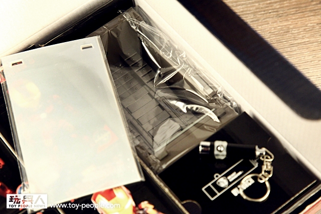 ▼ 內容物一覽,收錄了實驗室底座地台,以及東尼的好幫手-動力手臂。