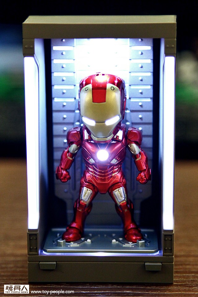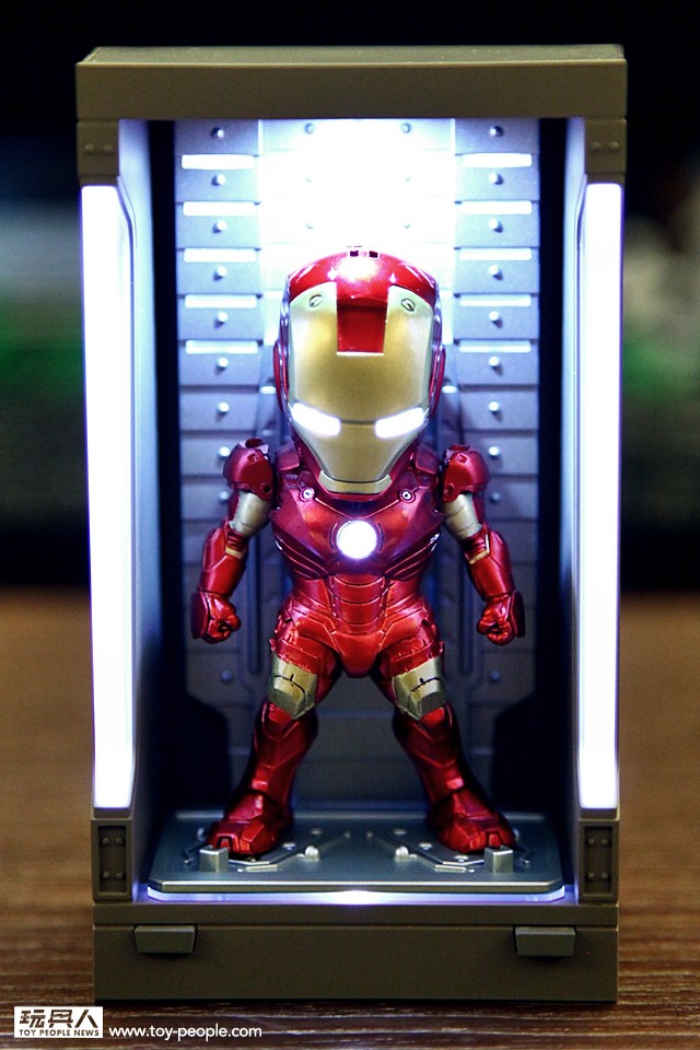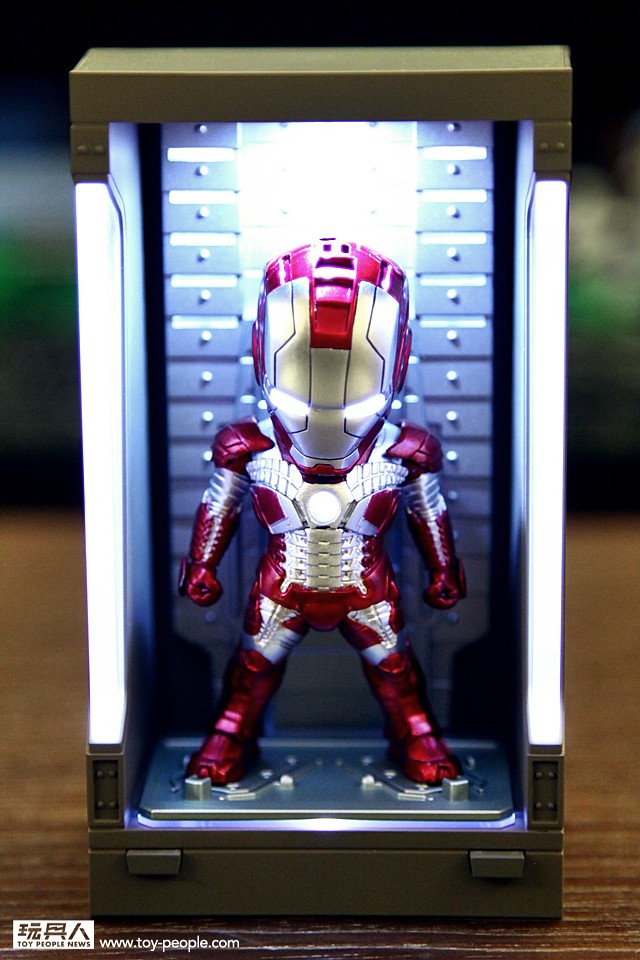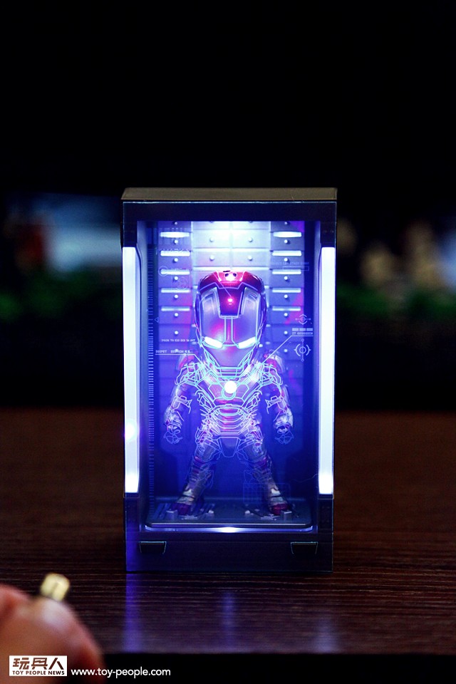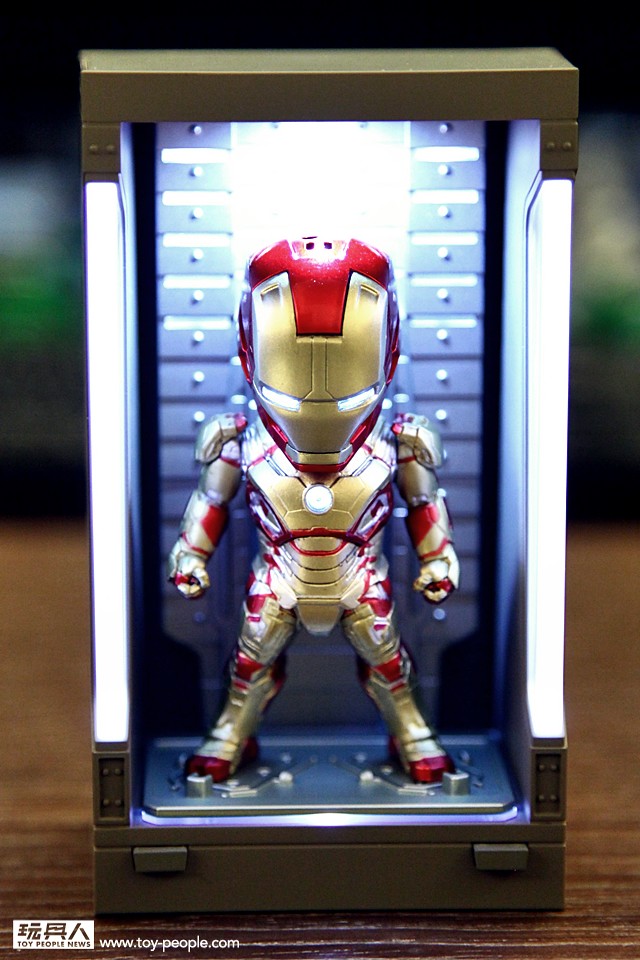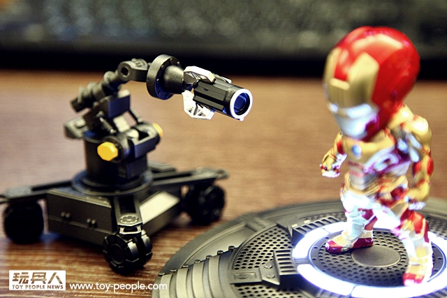 ▼ 實驗室底座的造型相當細緻,把電影中的場景完全Q版重現。並且在中央附有發光的效果,為馬克42增添更強大的氣勢!