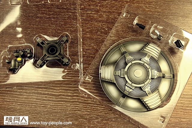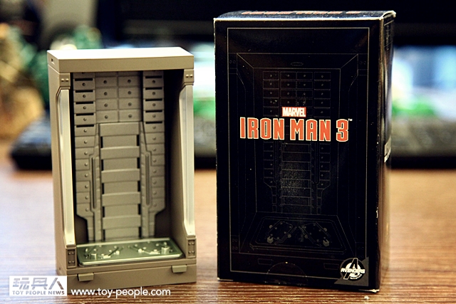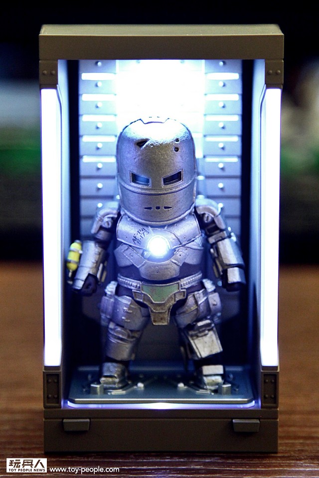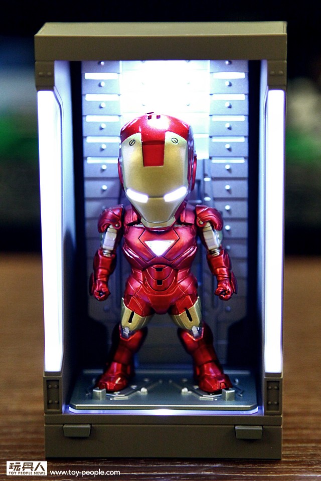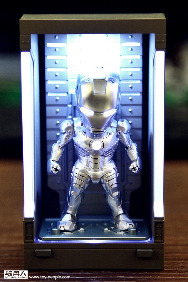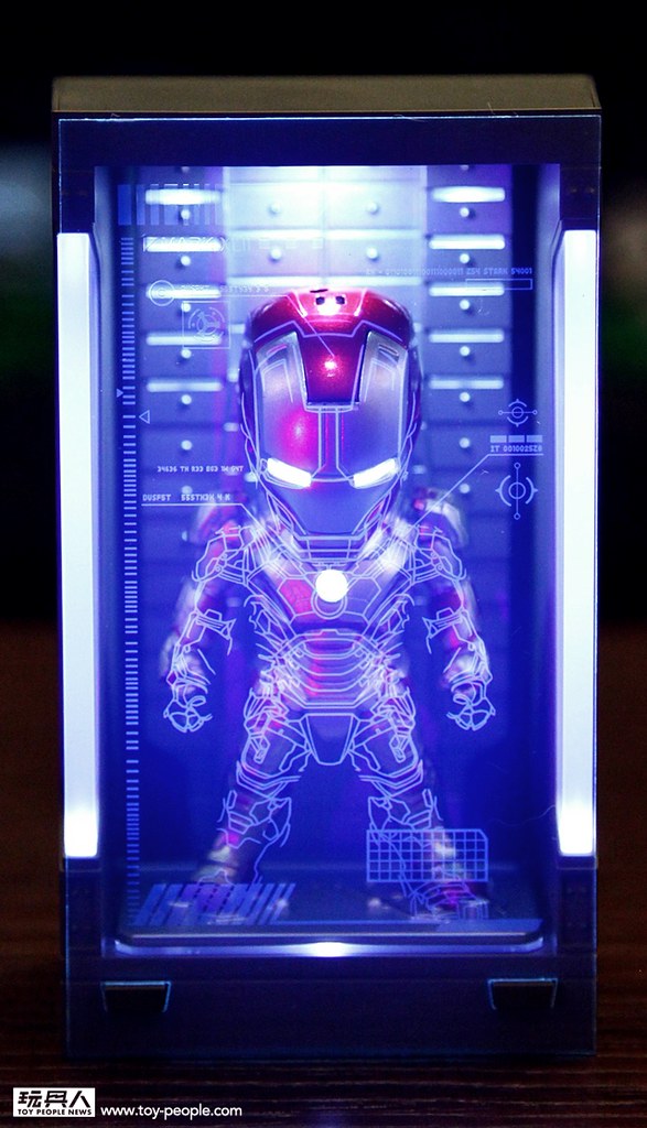 ▼ 實驗室底座的造型相當細緻,把電影中的場景完全Q版重現。並且在中央附有發光的效果,為馬克42增添更強大的氣勢!