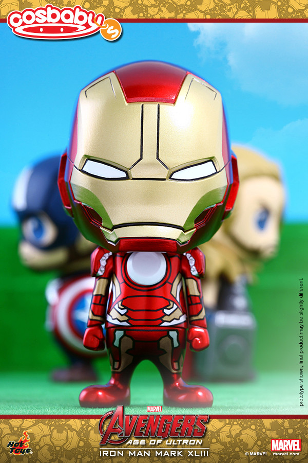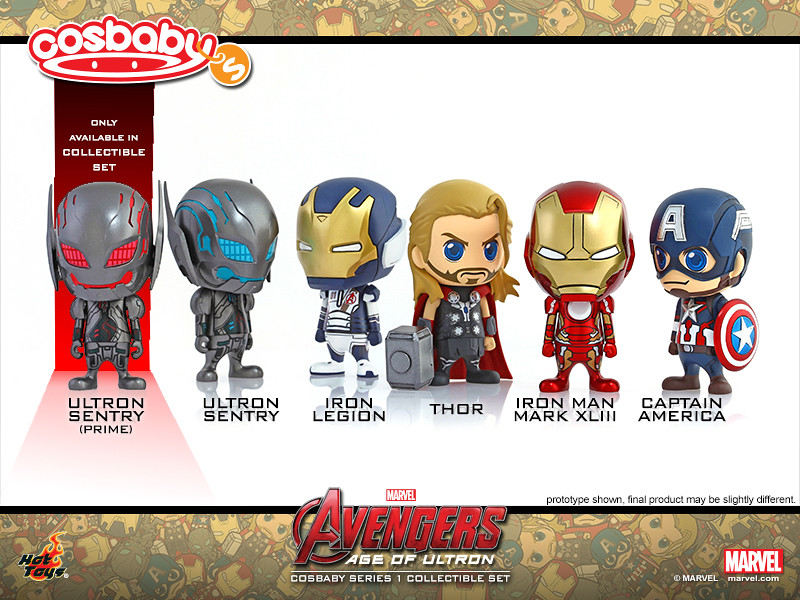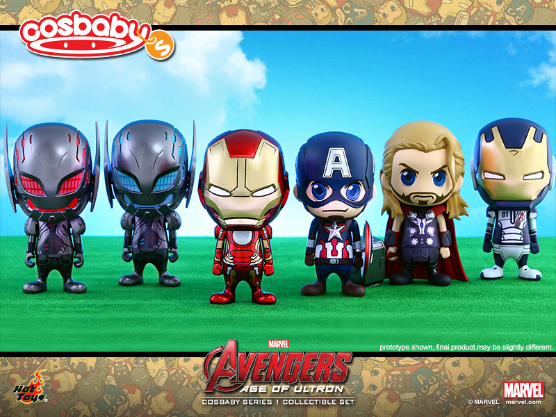 好久不見的Hot Toys 公司熱門Q 版玩具系列「COSBABY」宣佈將要推出知名續集電影「復仇者聯盟2:奧創紀元」(Avengers: Age of Ultron)的第一彈作品,首波將要推出五款作品:「馬克43」(Mark XLIII;COSB171)、「美國隊長」(Captain America;COSB172)、「索爾」(Thor;COSB173)、「鋼鐵大軍 – 編號01」(Iron Legion;COSB174)、「奧創哨兵」(Ultron Sentry;COSB175)。