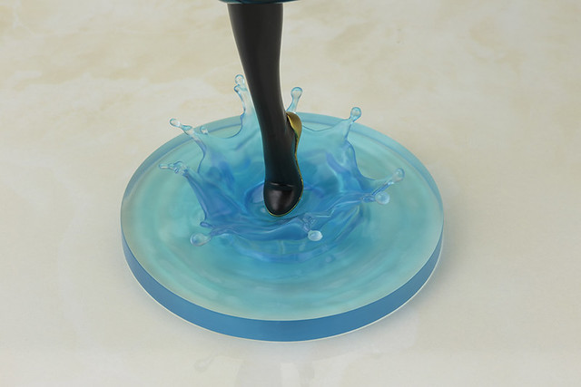 這次以山下老師的繪製造型製作出黃蜂女剛好降落在水面的模樣,並使用透明材質來製作像是昆蟲翅膀和底座的水面等等,也使用了特殊光澤的塗料來表現黃蜂女身後獨有的昆蟲翅膀,喜歡壽屋的驚奇漫畫美少女系列的玩具人可以參考一下歐!