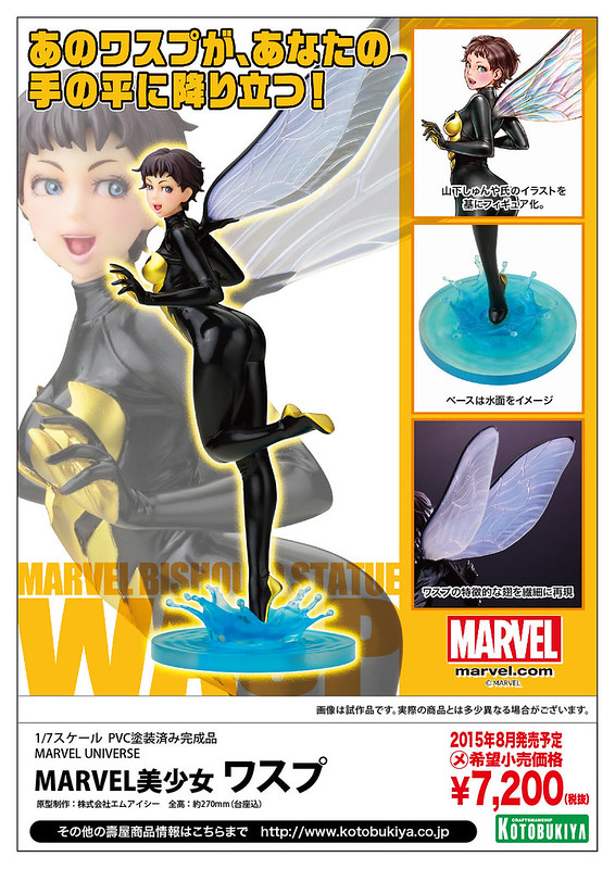 將一般常見的美式漫畫轉換成日系插畫風格的山下俊也(山下しゅんや)老師,在由日本壽屋玩具公司成功量產的“驚奇漫畫美少女”(MARVEL美少女)系列將再推出Wasp 黃蜂女(暫時翻譯),身為復仇者聯盟成員之一的黃蜂女。