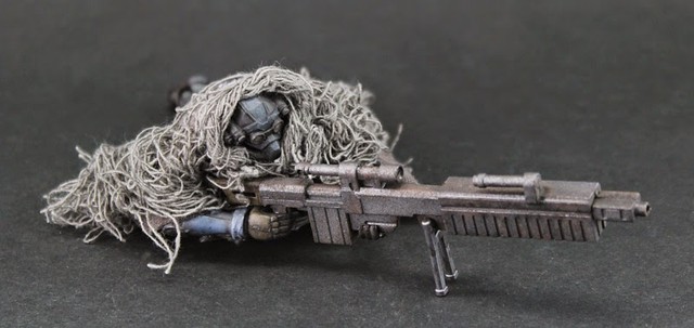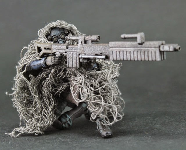 最後,坦克狙擊殺手“Argus”,使用了全新頭雕,穿著了全身的吉利服*,並配備了一把附腳架、殲滅坦克載具專用的狙擊炮(heavy artillery sniper rifle)。