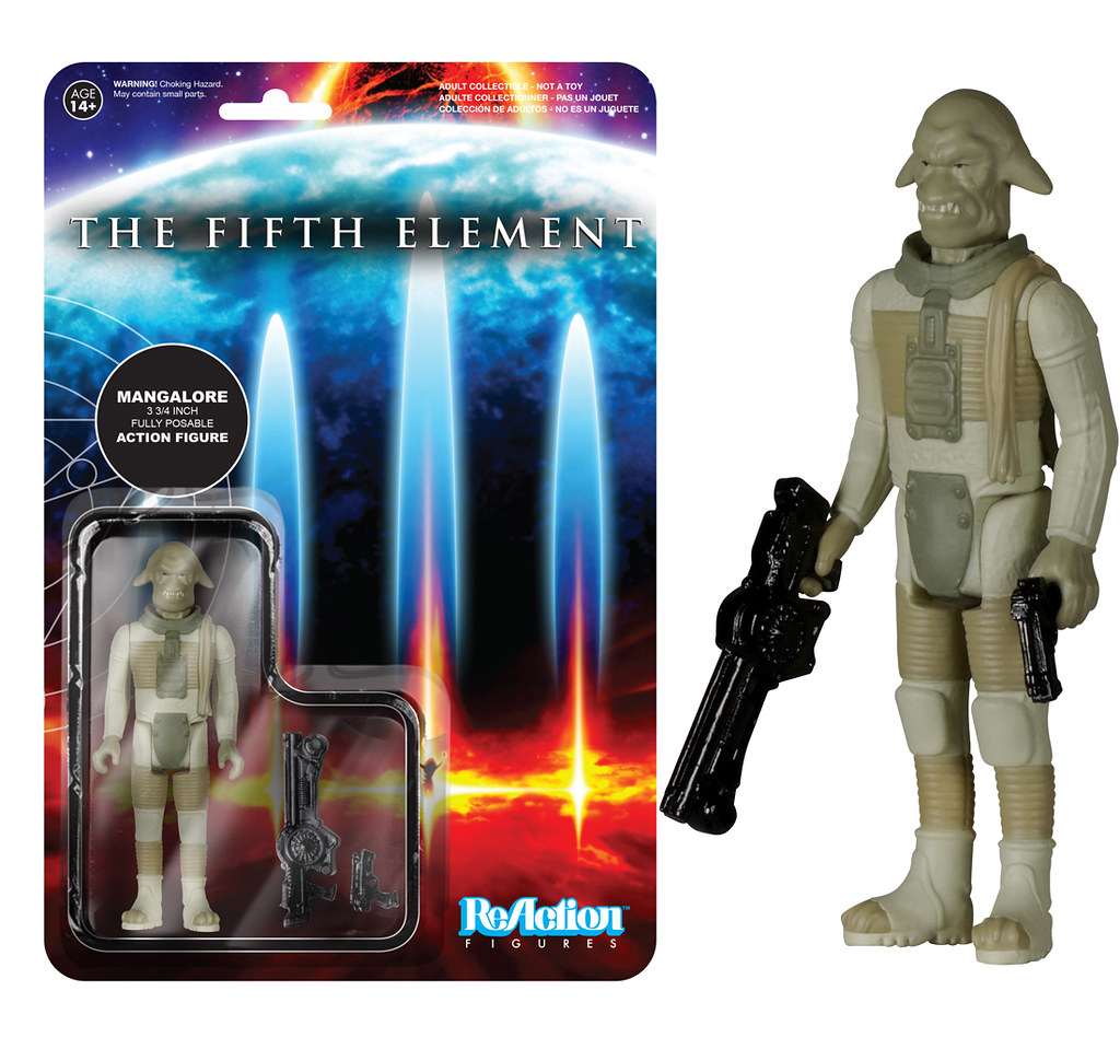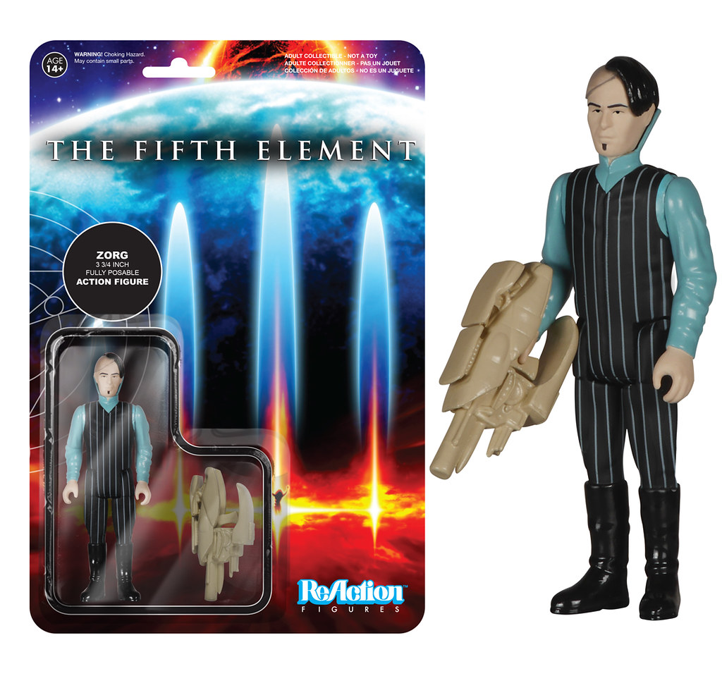 FUNKO 公司與SUPER7 合作推出3.75 吋的ReAction 系列又要推出經典老電影系列的新作品啦!這次FUNKO 公司將要推出六款的「第五元素」(The Fifth Element)作品:「莉露白色布帶版」(Leeloo Straps)、「莉露」(Leeloo)、「科本·達拉斯」(Korban Dallas)、「魯比·羅德」(Ruby Rhod)、「佐格」(Zorg)、「迪娃」(Diva Plavalaguna)、「蒙羅將軍」(Mangalore)。