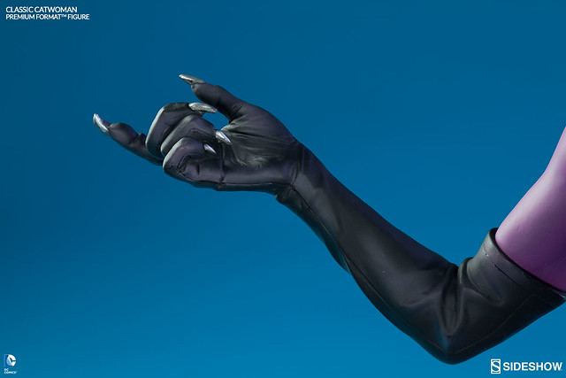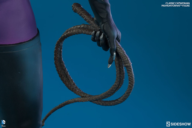 Sideshow Collectibles 公司將在其旗下最高水準的「Premium Format™ Figure」雕像系列推出1/4 比例的經典「貓女」的雕像作品。而這次所推出的樣式則是90 年代最招牌的造型,紫色的緊身衣搭配著黑色的皮手套與長皮靴,手套手指的部分則是有如貓爪一般銳利的樣式。當然,招牌的皮鞭也是不可以少的配件啊!