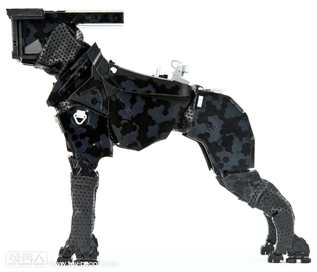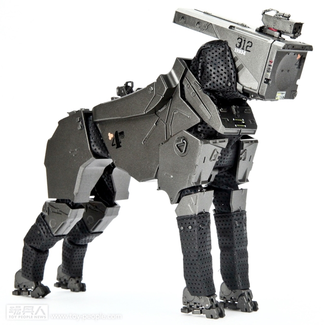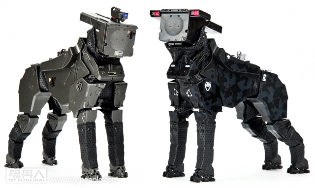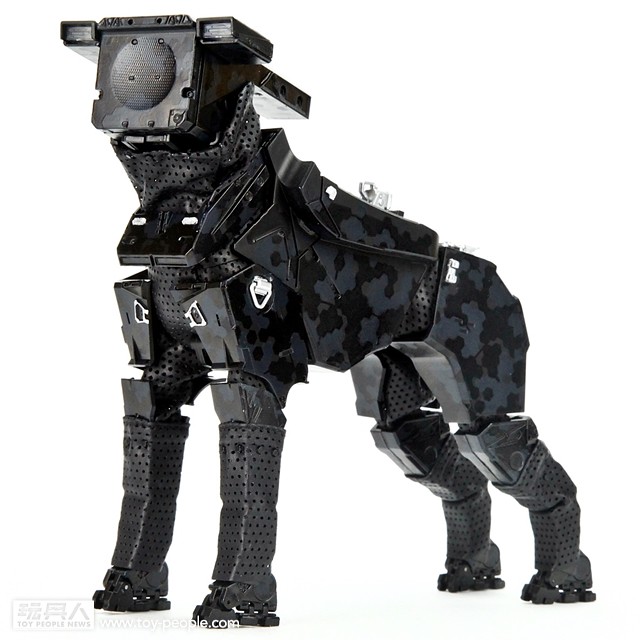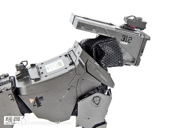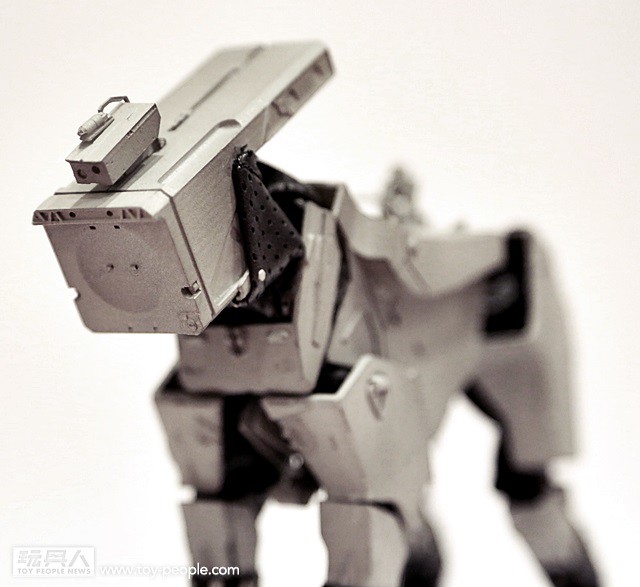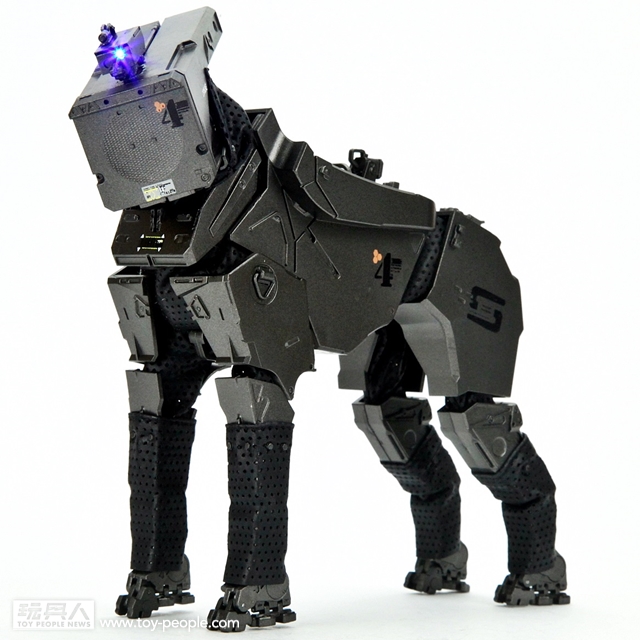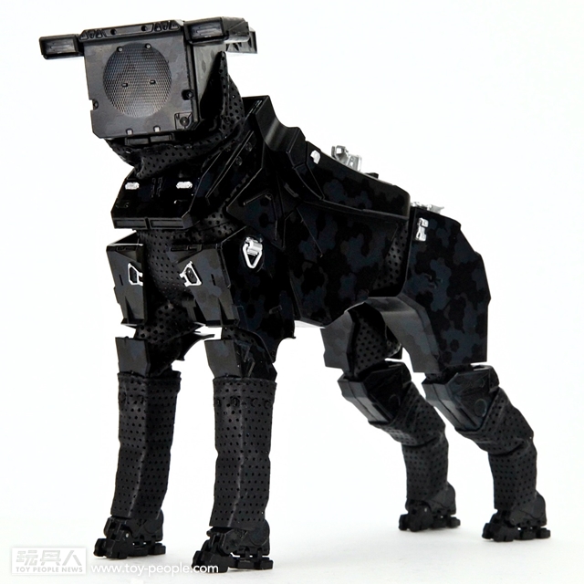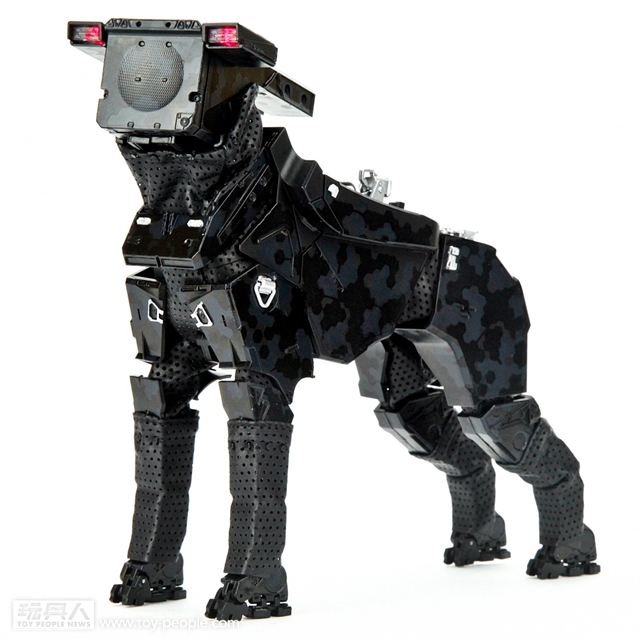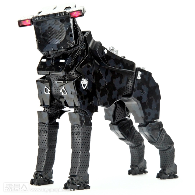 ▼ 有別於監視型的機甲戰犬,這款巡邏型的機甲戰犬,在頭部的兩旁配置兩個紅外線掃瞄的偵查裝置,是配置紅色的LED 發光裝置,搭配超讚科技迷彩黑的上色質感,除了喜愛機械風的玩具人之外,對於軍事風格有興趣的玩具人一定要買來搭配一下家中的軍偶啊!