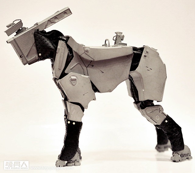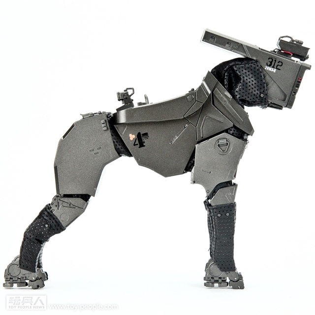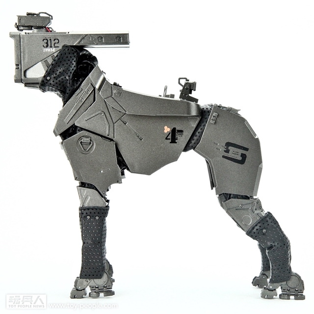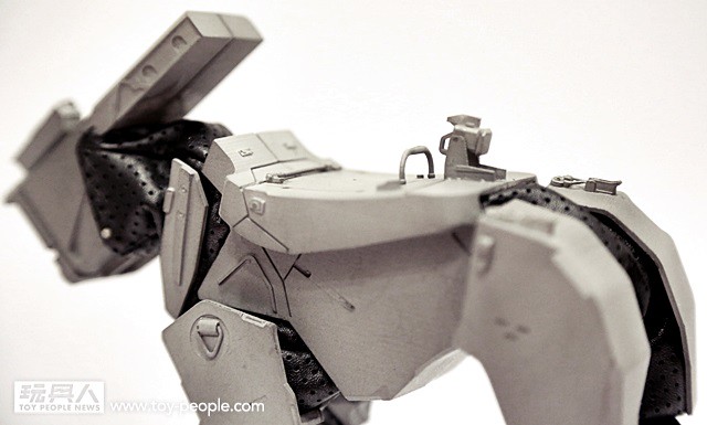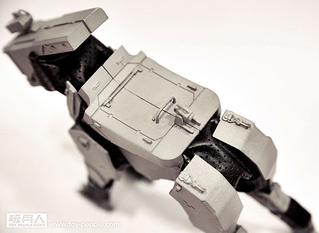 ▼ 「神秘消光銀」版本的機甲戰犬,其在設定上是於戰場中負責監視的戰犬(General Purpose Surveillance),因此在這款作品的頭頂上有一個雷射功能的發射器,可以有效的蒐集到重要的情報。而在它頸部、腿部所使用的材質,是高級的仿皮材質,搭配著金屬消光銀的配色,更能凸顯這款作品的質感。