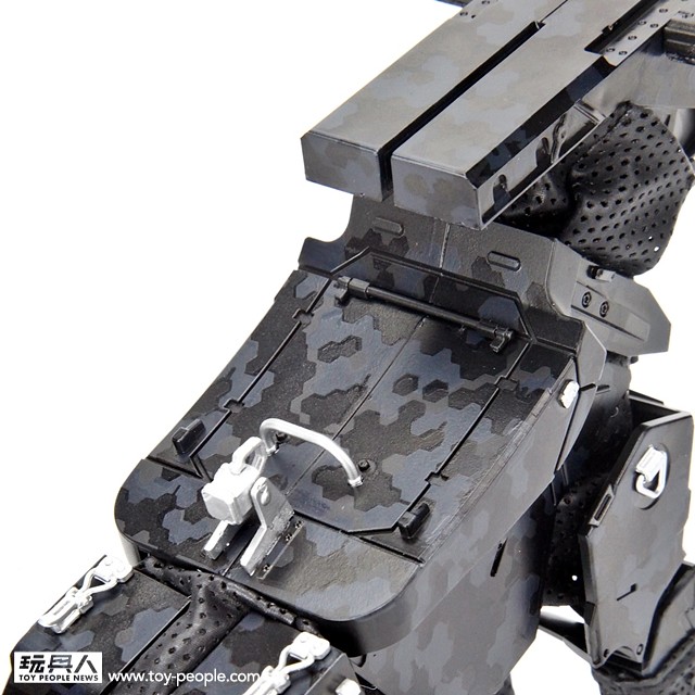 ▼ 因為被設定是在戰場中負責巡邏與監察的任務,因此其隱密性必須要高,而為了因應夜晚的任務,所以整體造型是採用黑色搭配深灰色的科技迷彩配置。而在身上配件的部分則是採用亮銀色的配色。因為作品機械感的設定,所有許多稜角與凹凸槽的設計,不過在整體作品的上色上絲毫的不馬虎,所有細節都有兼顧。