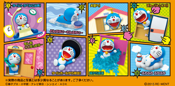 日本知名食玩品牌RE-MENT 公司預定將在2015 年 04 月13 日推出最新哆啦A夢系列(ドラえもん)的「超立體!造型磁鐵」食玩作品。這次所要推出的食玩作品是以哆啦A夢漫畫中,哆啦A夢所使用不同特殊道具的場景,並將其從漫畫中拉出來作為立體化的造型磁體。