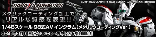 已在去年因應《THE NEXT GENERATION -パトレイバー-》機動警察的TV寫實版作品推出過《機動警察》98式AV 英格蘭姆 1/48比例組裝模型,將再推出其金屬塗裝版本 (メタリックコーティングVer.)。
