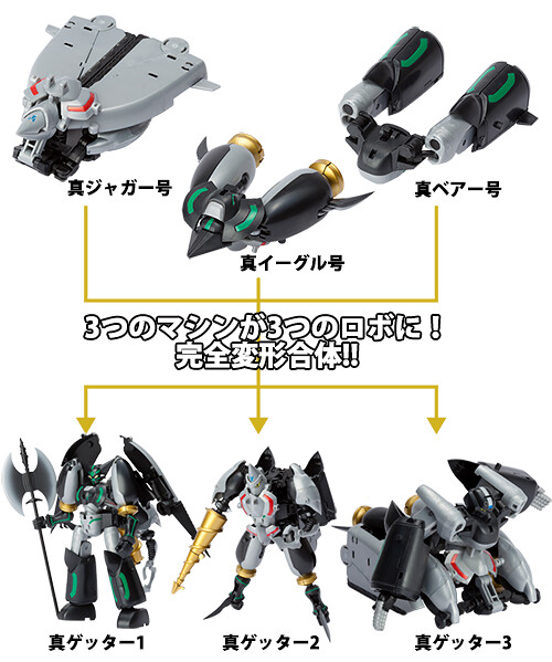 重現了合體、變形機器人始祖「蓋特機器人」的魅力,三具機體因應戰況自由合體變形為三種機人型態。90 年代登場的「真蓋特機器人」,擁有著現實不可能辦到的變形合體系統,藉由FREEing 獨特的設計與詮釋,完全沒有多餘的零件,成功地實現了這不可能完成的變形!
