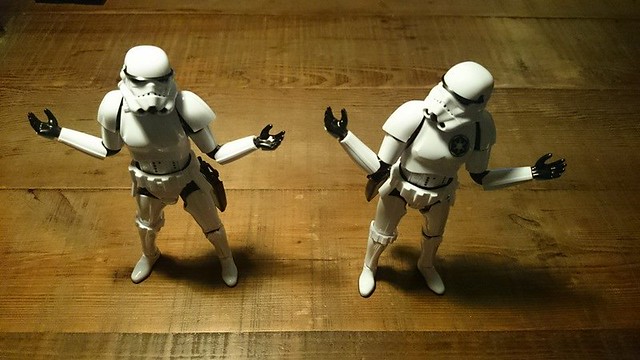 年初拿到白兵模型並組合後,個人覺得這實在是個非常有表現力的玩具,從星戰劇情、從白兵的基層上班族象徵,從台灣社會的日常生活與文化慣性,都可以嘗試出各種有趣的劇情,所以我試以「白兵劇場」名之,試看看用白兵這主題與此種表現法可以承載多少想像與趣味,所以就野人獻曝二十篇白兵劇場,跟大家分享囉。