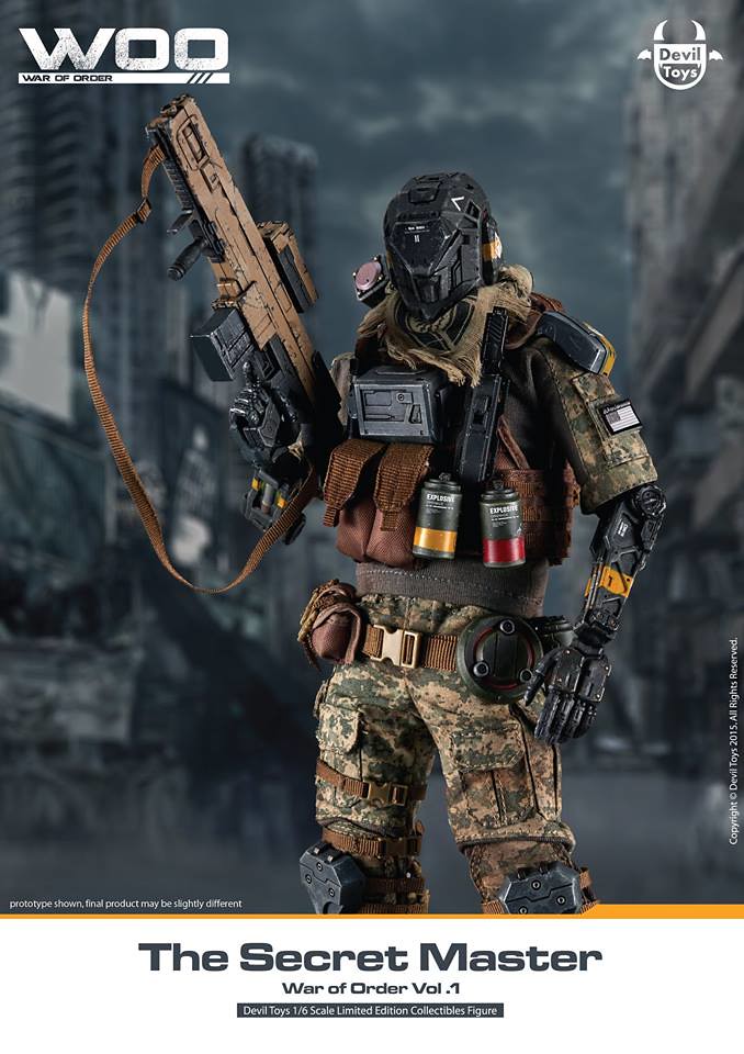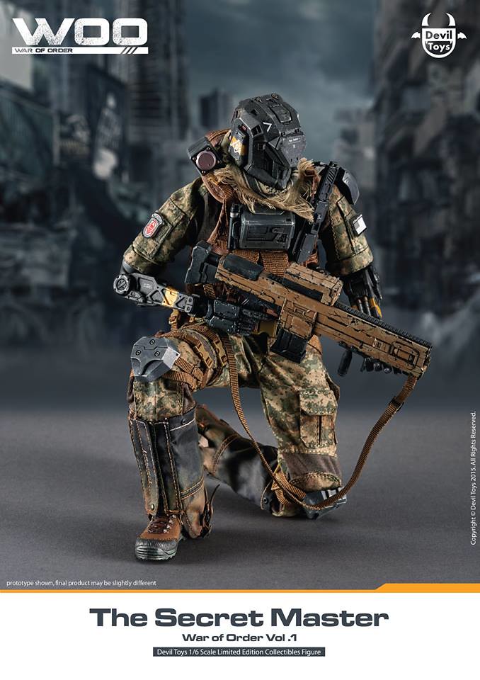 『War of Order』系列,採用了1/6 比例收藏人偶中相當熱門的軍武題材,融合了近未來的科幻設定,誕生了一個市面上從未出現的嶄新系列。「The Secret Master」的機械手臂、頭雕、服裝造型全部為全新的原創製作;全身露出的機械部位除了細緻的造型之外,還將施以逼真的舊化塗裝,並附有3對不同的手部替換零件可供交換。而武裝與配件部分,將配備了沙漠塗裝的衝鋒步槍、手槍、小刀、肩上雷達儀、震撼彈、手榴彈與磁力指向性地雷。