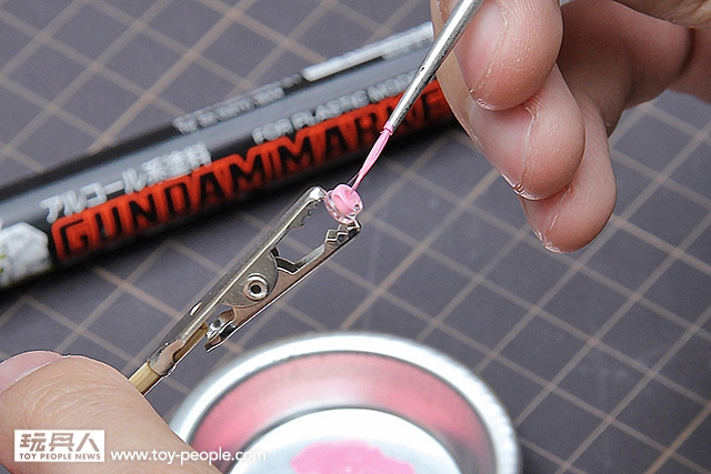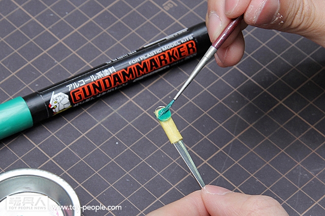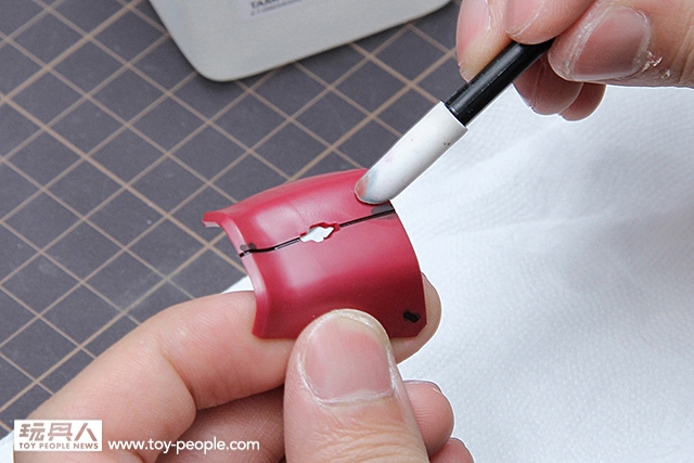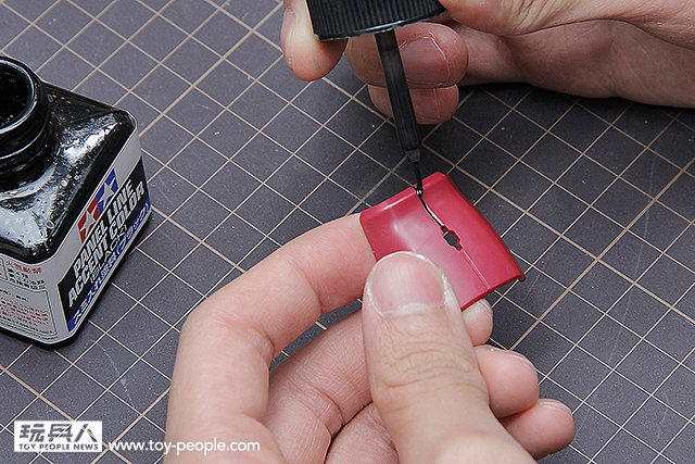 ▼ 入墨的方式,就是在零件上有明顯線條的細節部分,點上墨線液。而墨線液在使用前都需要鎖緊瓶蓋搖均勻。