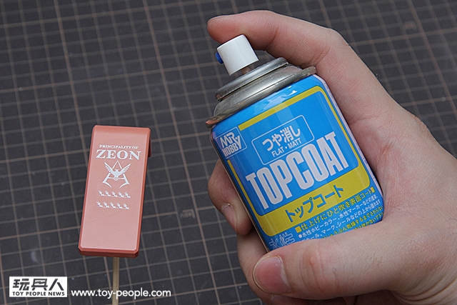▼ 壓完之後,貼紙就會黏在零件表面。這種刮刮貼,其實很容易又被刮壞,所以我們可以噴上保護漆作保護。通常會推薦使用水性消光保護漆,因為它的漆料粒子比較粗,可以遮蓋掉比較多的瑕疵。