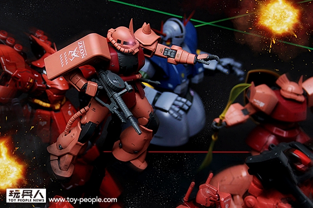 ▼ 搭配MG用支架,就可以做出更多的姿勢呈現。夏亞專用薩克II 出動,出動姿勢是必備的定番動作。