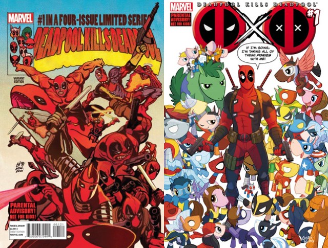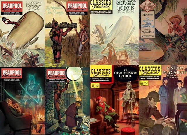 第二部曲叫做 Deadpool: Killustrated(死侍屠殺文學名著),死侍在故事一開始殺光所有虛構的人事物,包含一般的路人,因為他們也是創作者虛構的,可能多少會受到牽連,並還跑去許多世界,殺掉不同版本的英雄與惡棍。(此圖為漫畫與原作封面的對照圖,讓大家知道致敬的點在哪)