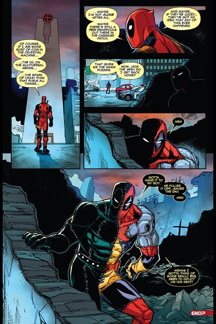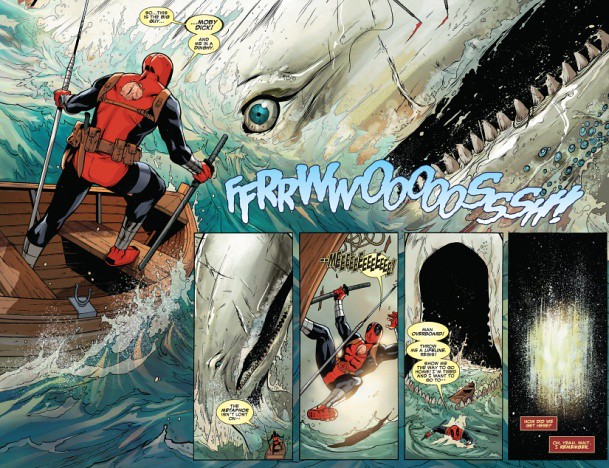 死侍留了許多邪惡天才一命,讓他們以世界萬物都是創造者虛構的理論,開發一個穿越時空的機器,但就當死侍穿越後,就放出機器殺死那天才反派,並到許多文學名著所在的共同世界,開始殺害白鯨記、湯姆歷險記、唐吉軻德、斷頭谷、海底兩萬里….等劇情裡的主要角色。