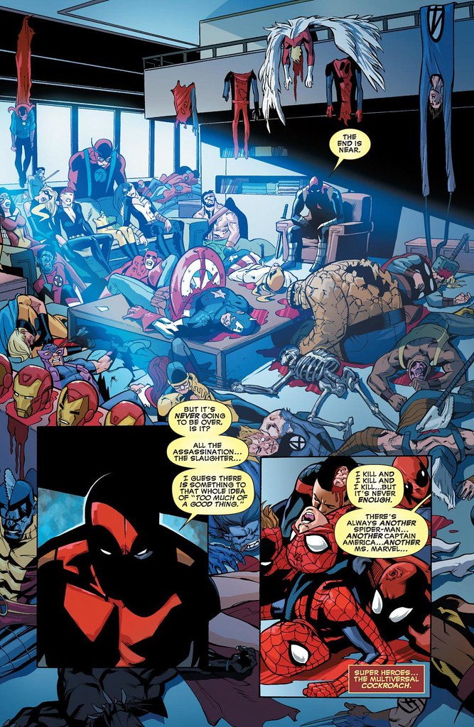 隨後用穿越第四牆的知識,開始屠殺所有超級英雄和超級惡棍,先是驚奇四超人、再來是復仇者聯盟,接著是X戰警,最後再用魁儡大師,操控剩餘的惡棍與英雄互相殘殺或者自殺。