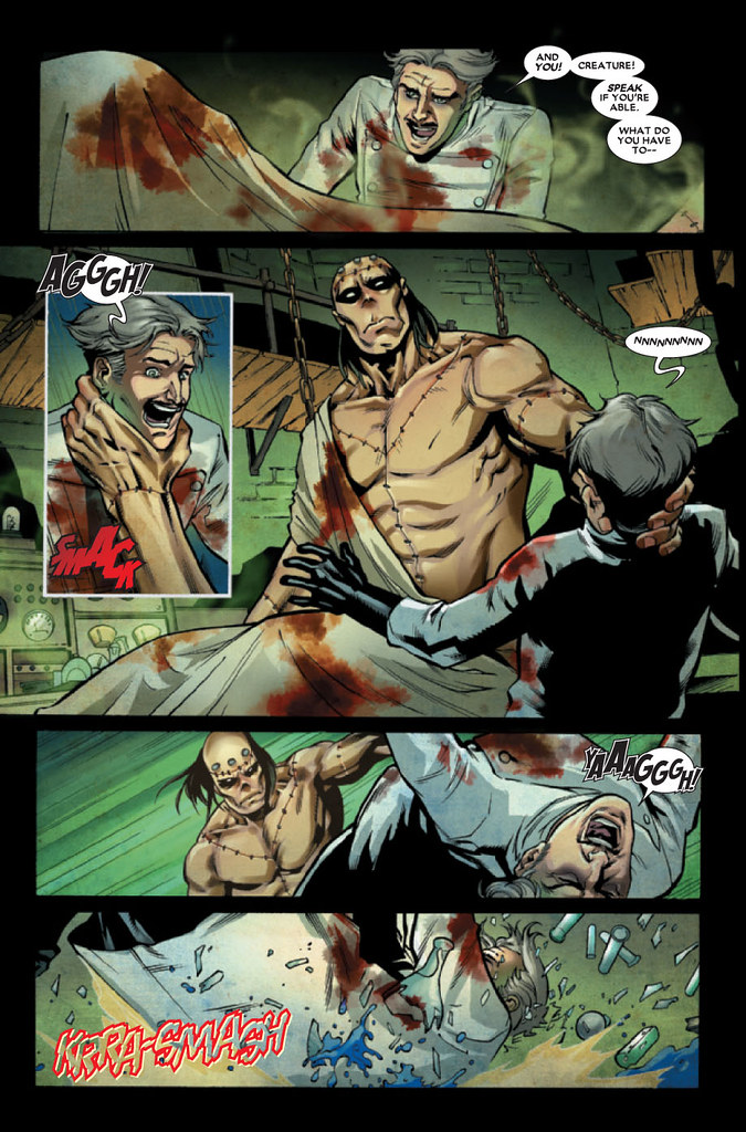 死侍為了增加同伴,於是來到科學怪人那邊,將自己一部分的腦子放進其屍體內,當弗蘭克林斯坦博士復活科學怪人的當下,科學怪死侍就此誕生,因此多了一個夥伴陪他屠殺。然而福爾摩斯的團隊,在死侍殺掉三劍客和達太安後,也殺掉科學怪死侍,花木蘭也在戰友的犧牲下,砍斷死侍有傳送器的手。