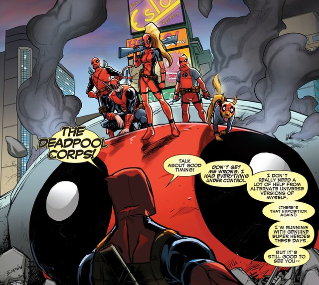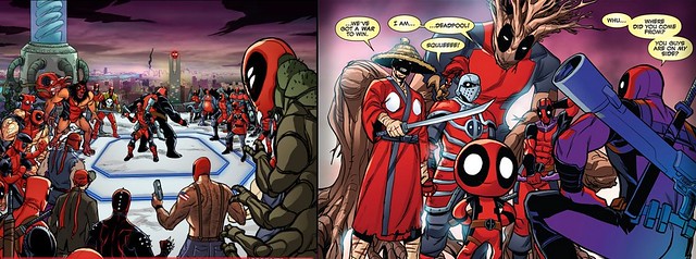 但死侍感到很累,因為不論怎樣殺,就有千千萬萬個蜘蛛人、浩克、美國隊長….等版本在不同世界活躍著,於是他想到要去解決掉根源,也就是啟發超級英雄創作的靈感來源,也就是文學名著故事所在的世界。