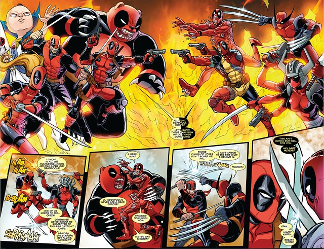 所以這樣的發展弄出了三部曲故事,都由編劇 Cullen Bunn 所編寫的劇情,因此也有人做 Cullen Bunn 三部曲,,或者 Deadpool Killogy(死侍屠殺三部曲)。是近年把死侍瘋狂和設定的部分,玩得非常厲害的系列,尤其第三部曲牽扯到所有世界的死侍,不只讓正史世界版死侍,還讓所有曾經出過漫畫平行世界版本死侍,更在這此系列創造了一些原創死侍,如銀河王版的死侍等登場。