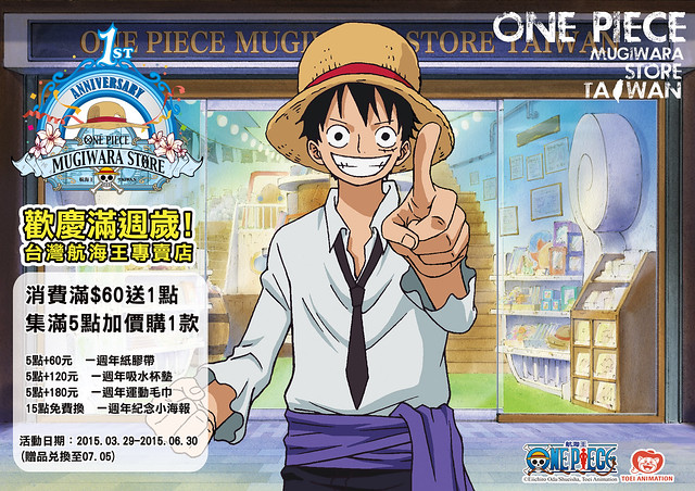 航海王周邊商品專賣店《草帽商店》的台灣分店《台灣航海王專賣店》,將於3月29日迎接一週年!為了慶祝這特別的日子,《台灣航海王專賣店》特別推出了限定販售的1週年紀念商品、特價活動 & 集點贈獎活動!
