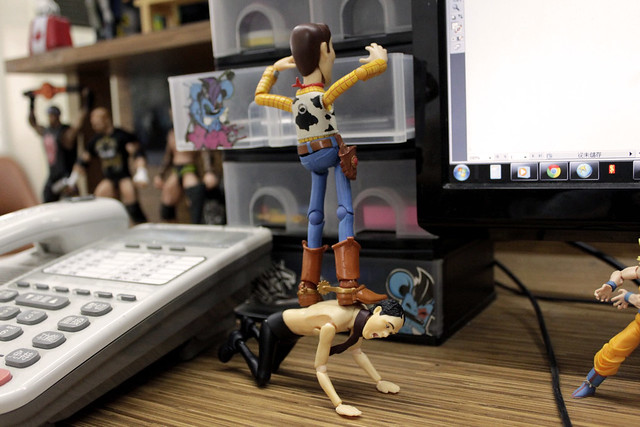 一直以來都有久久無聊"買一下玩具擺著放的"習慣,幾年前某次因緣際會下看到紐約的大師The One Cam幫海洋堂山口式的胡迪拍攝一系列的玩具照後,我變為之瘋狂的愛上這傢伙,拉下臉皮在Face Book上用著破英文詢問他相關訊息,從根本不知道山口式、Figma、S.H.F. iguarts是什麼東西,到現在變成每天不逛一下玩具網站,一個月不買4、5隻玩具會死的宅男。這邊還是要再次感謝我的啟蒙老師TheOneCam,感謝你開啟野比的第二人生(笑)