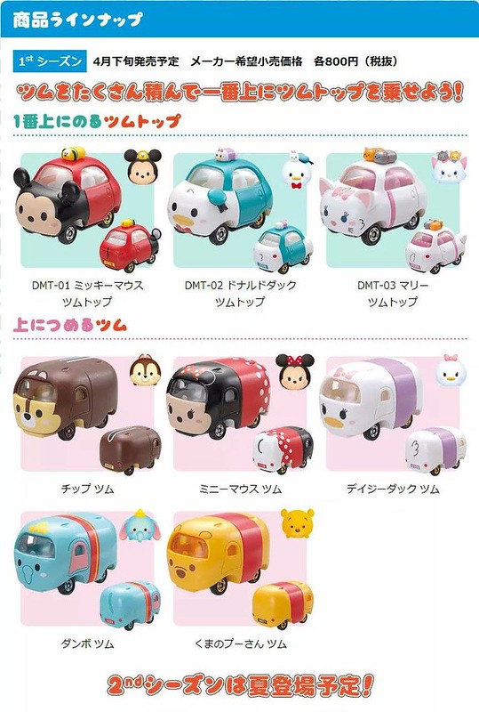不知道有沒有玩具人在玩「LINE:ディズニー ツムツム」迪士尼消消樂(名稱暫時翻譯)一款手機遊戲,ツムツム是日文堆疊的意思,這次與玩具廠商TOMICA合作推出TOMICA Disney Motor Tsum Tsum 迪士尼堆疊小車,首波收錄有8款可愛的Tsum Tsum 小車子。