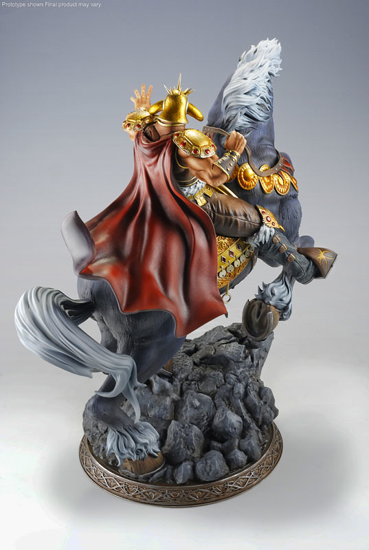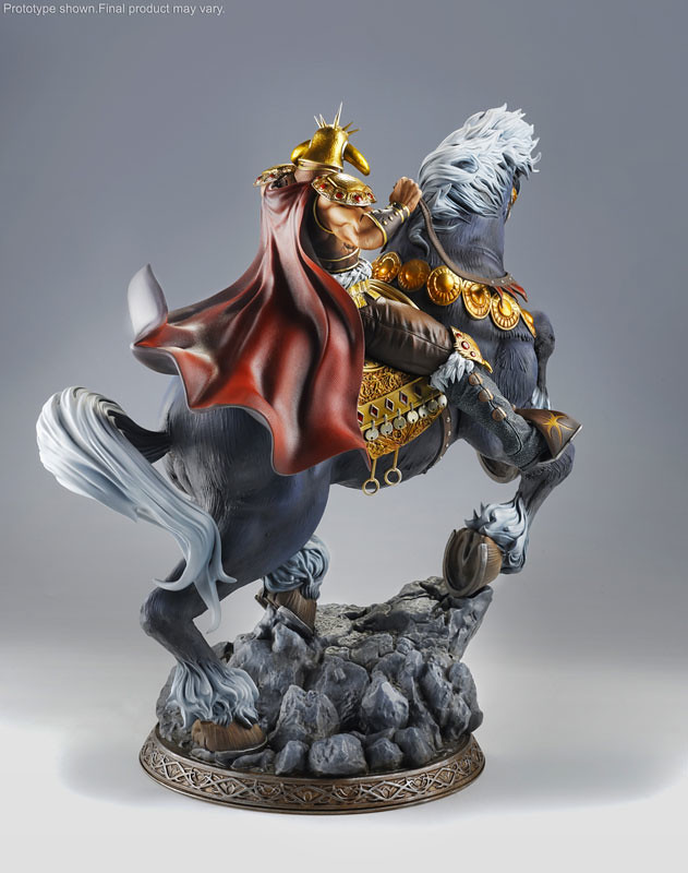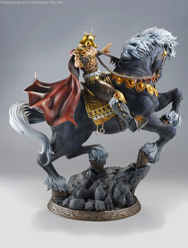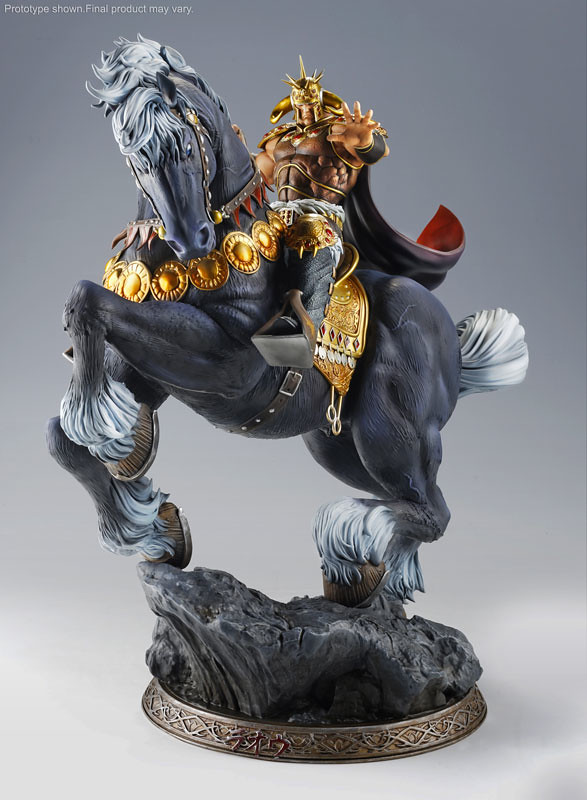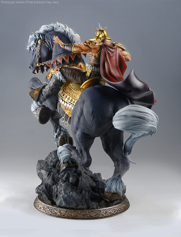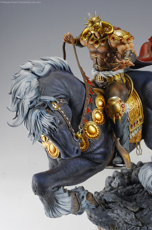 這次所推出的作品,以“世紀末霸主”為主題呈現,刻畫了拉歐坐在宛如象般巨大的巨馬「黑王」上,壓倒性充滿王者霸氣的姿態,極具份量的大尺寸,搭配上細緻、逼真的造型與高質感的塗裝,絕對是《北斗神拳》粉絲值得入手的精彩傑作!